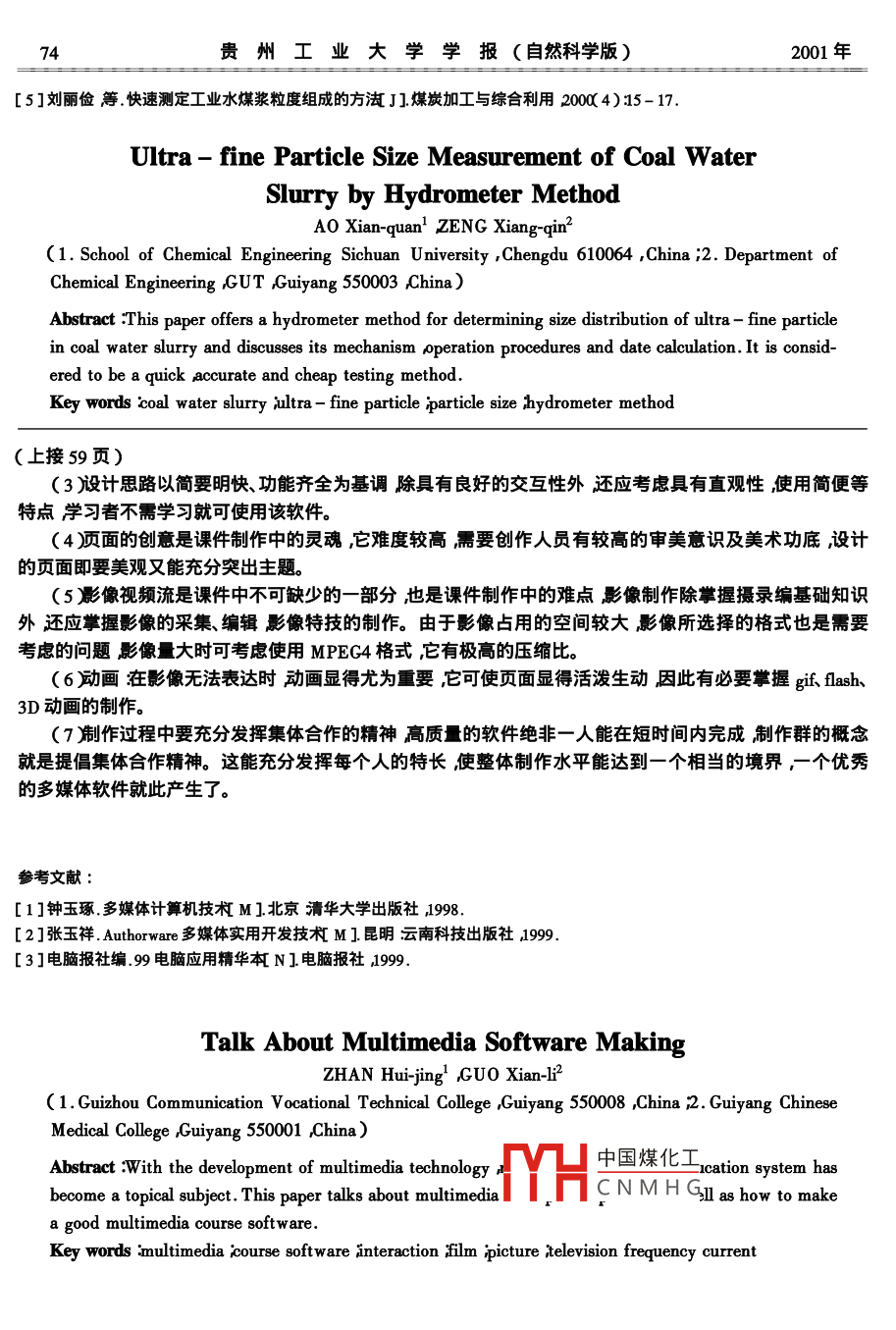 - 作者单位:贵州工业大学化工系