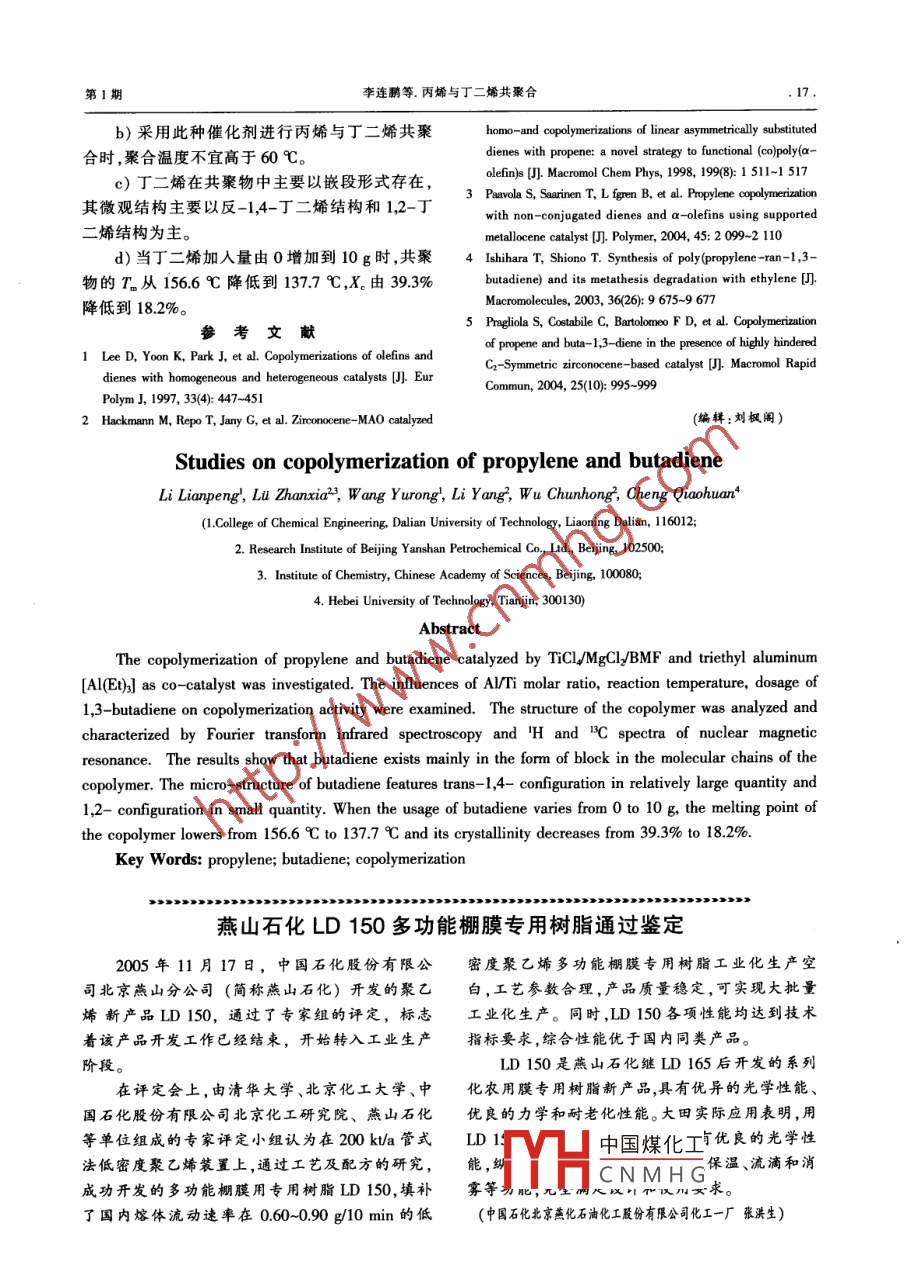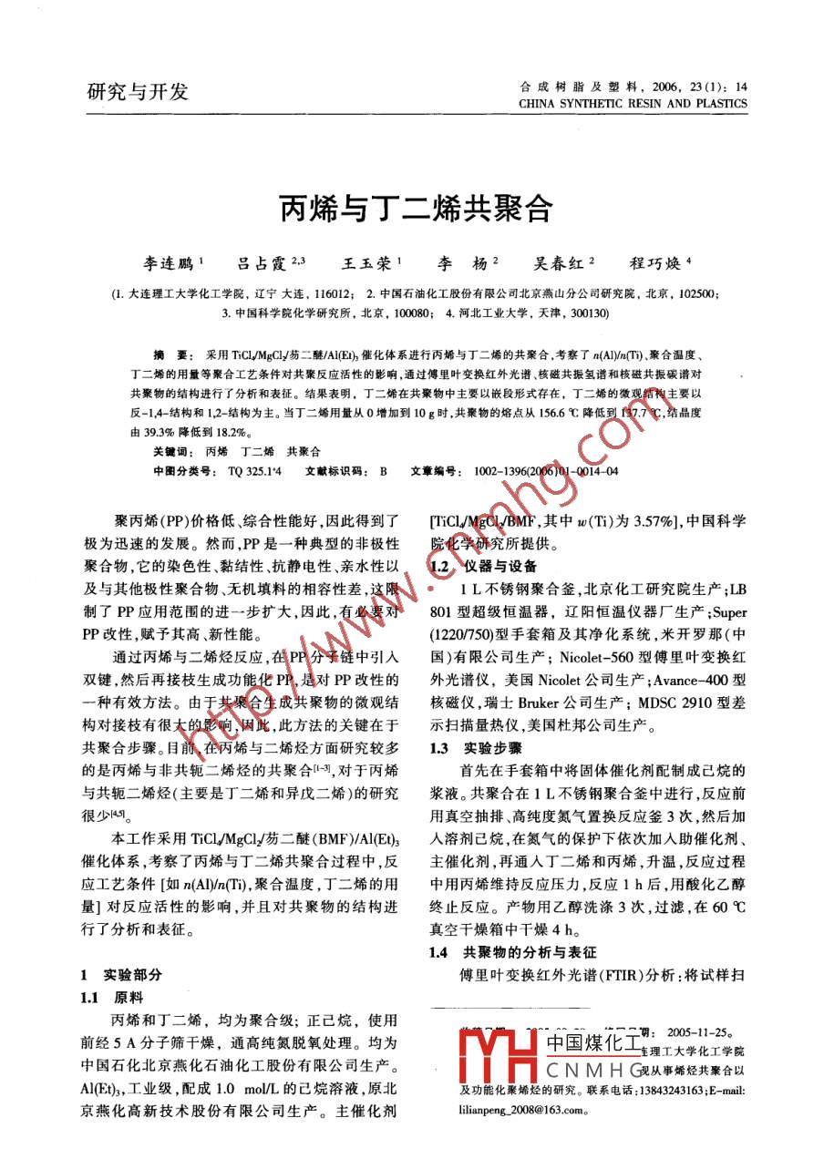 - 作者单位:大连理工大学化工学院,中国雷竞技世界杯手机登录 化工股份有限公司北京燕山分公司研究院,中国科学院化学研究所,河北工业大学
