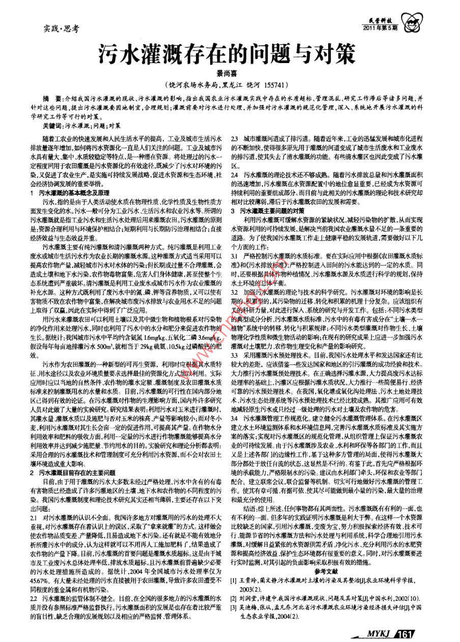 污水灌溉存在的问题与对策