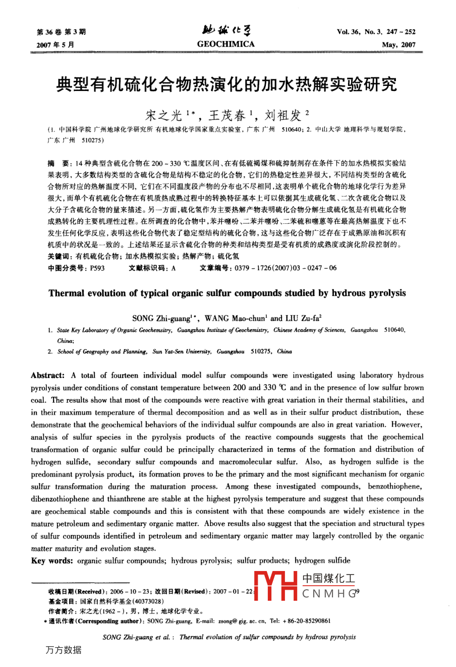 典型有机硫化合物热演化的加水热解实验研究