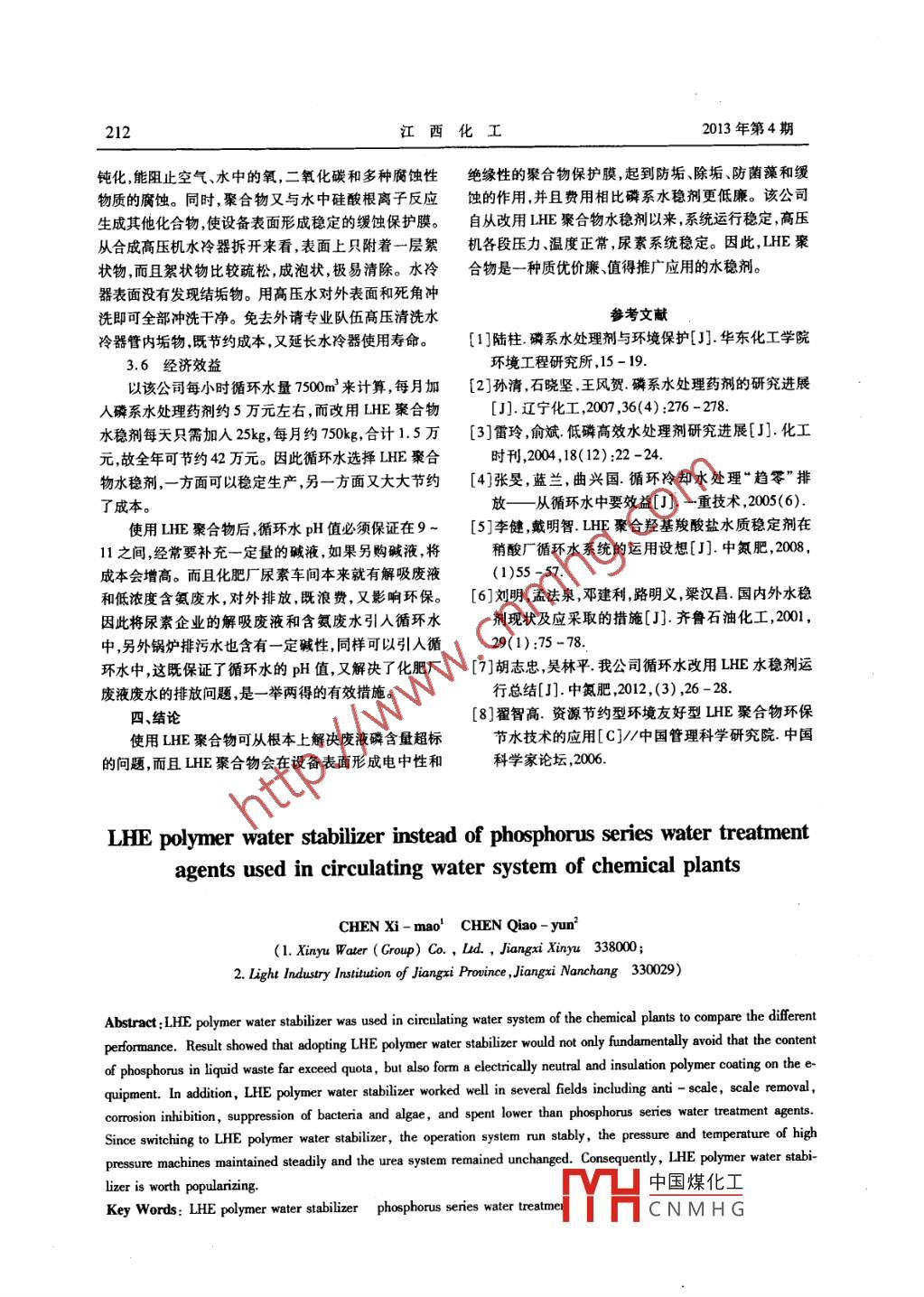 化工厂循环水系统用LHE水稳剂代替磷系水处理剂的应用研究