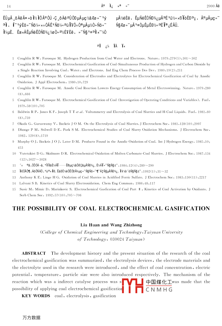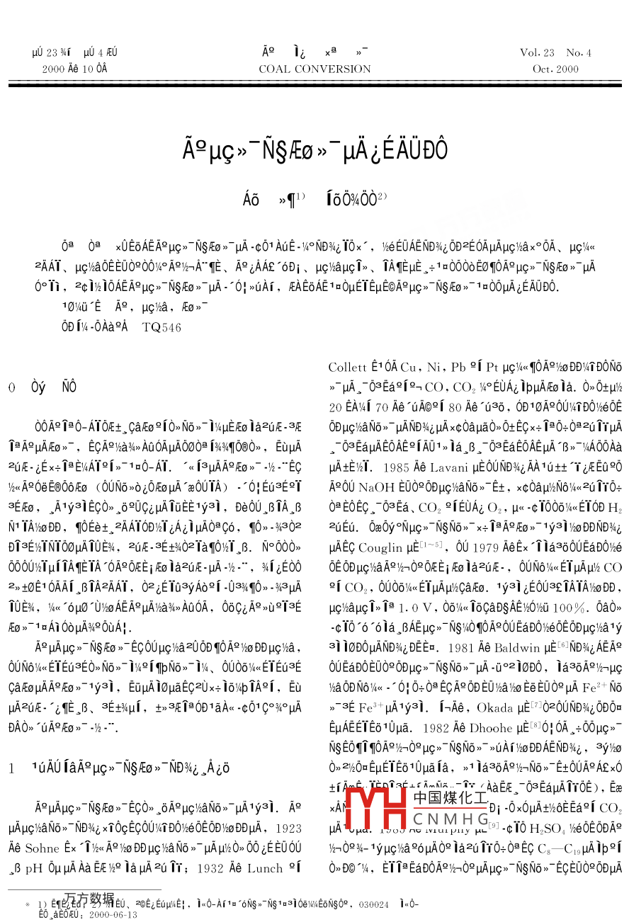 - 期刊名字:煤炭转化
