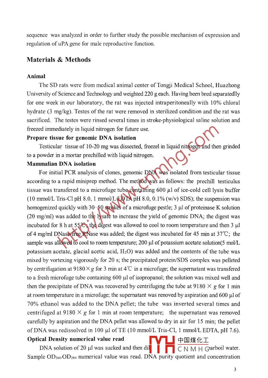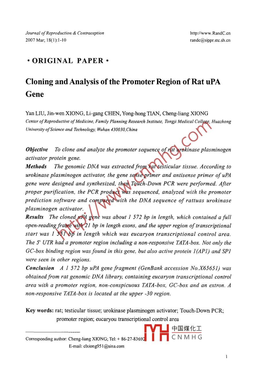 Cloning and Analysis of the Promoter Region of Rat uPA Gene