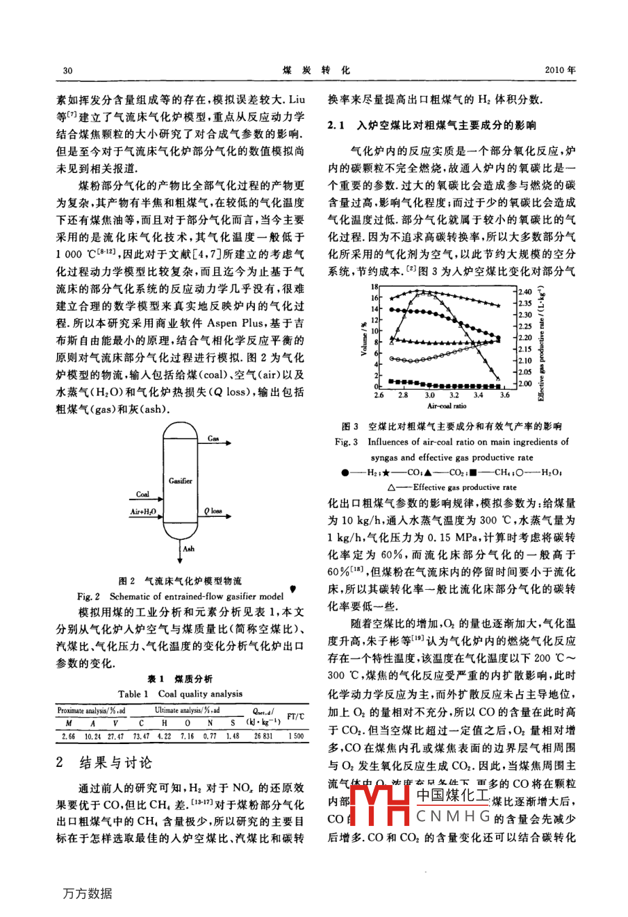 气流床气化炉煤粉部分气化特性的研究