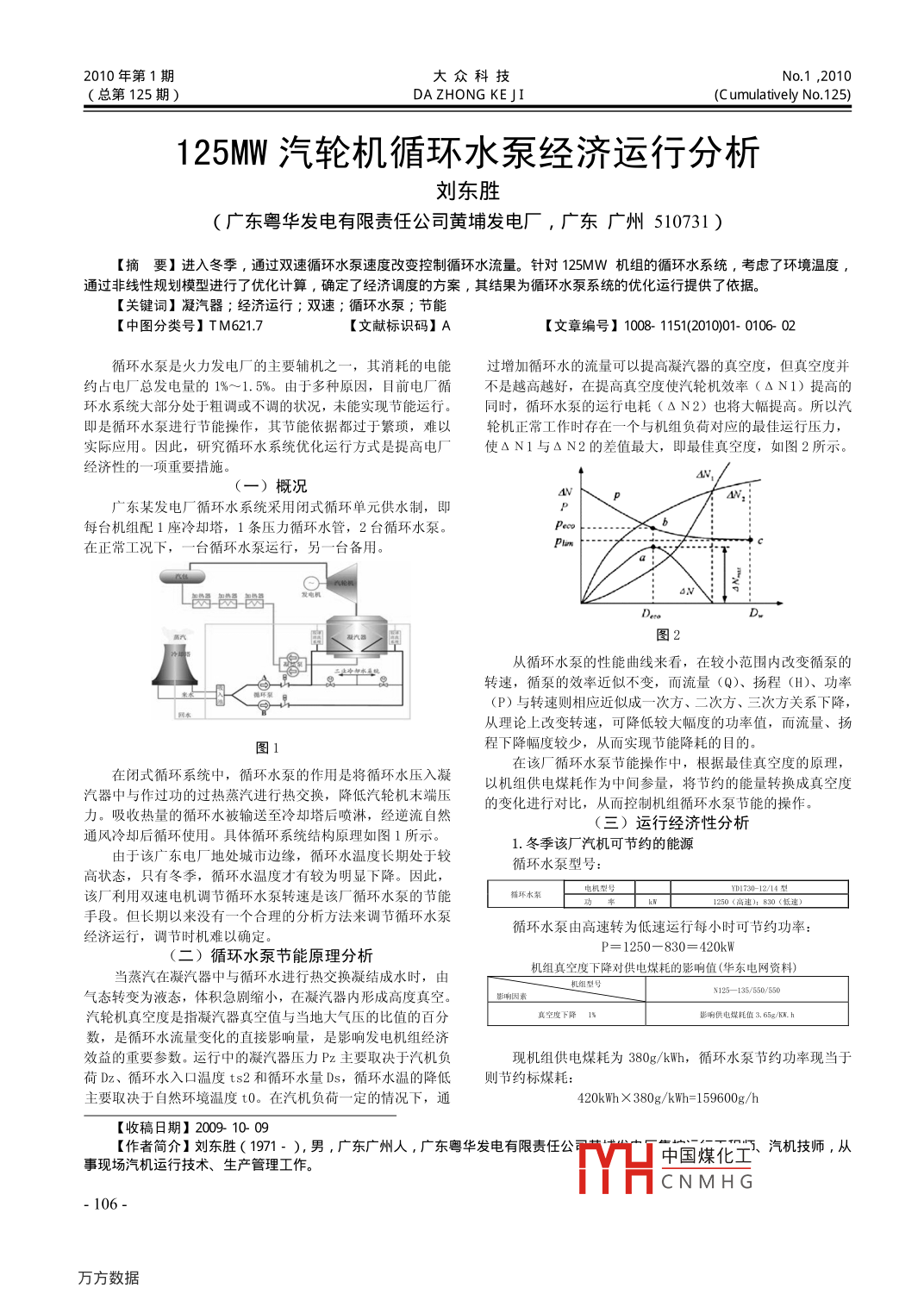 125MW汽轮机循环水泵经济运行分析