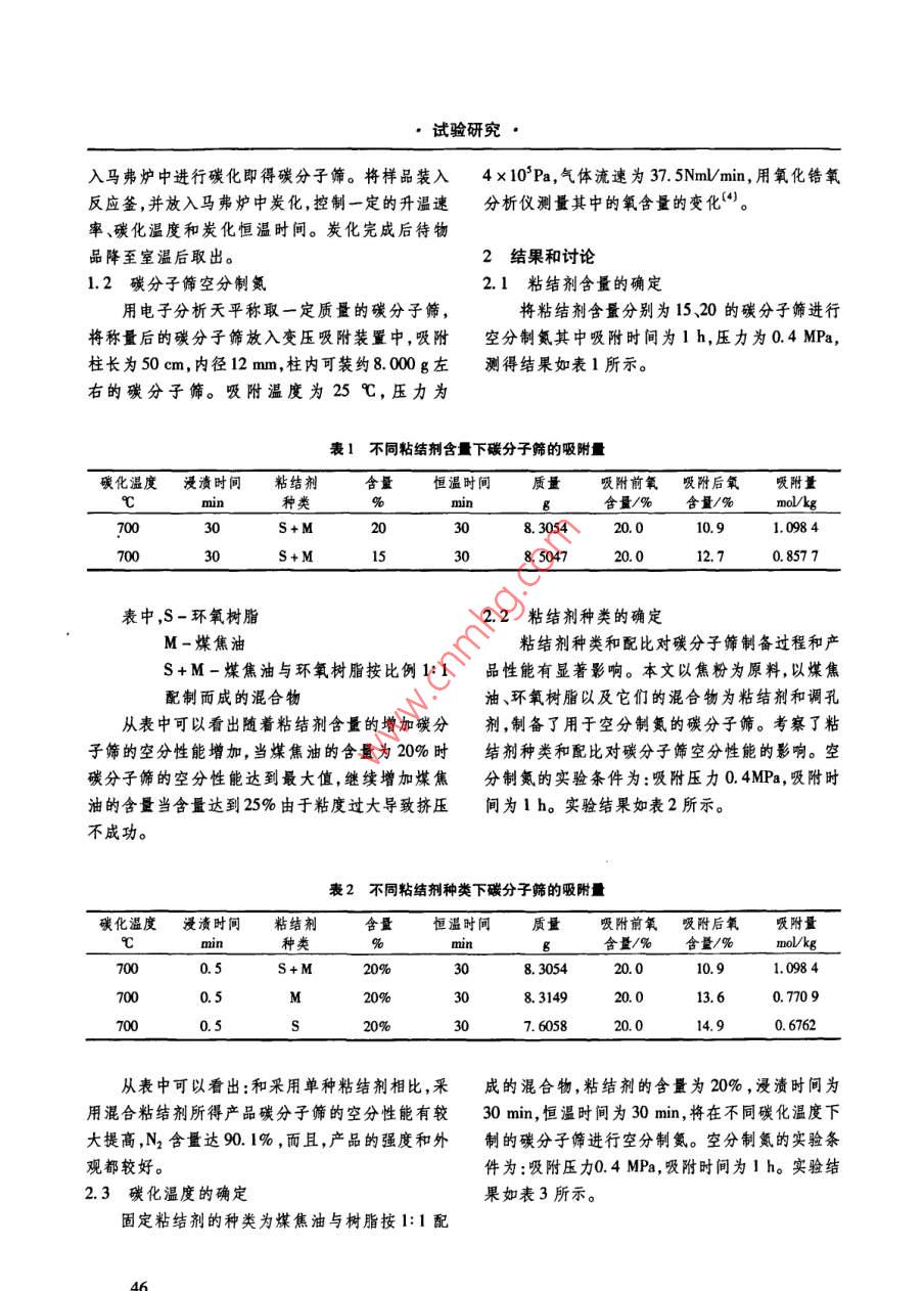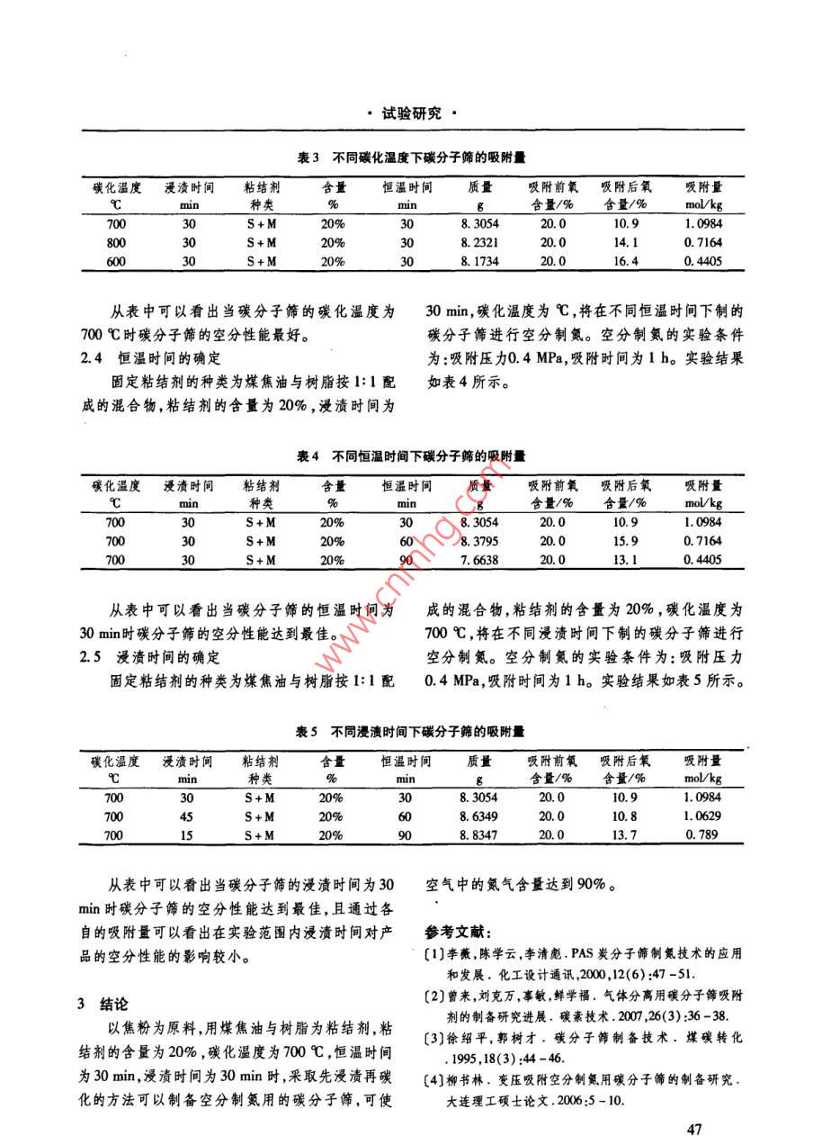 以焦粉为原料制备空分制氮用碳分子筛的研究