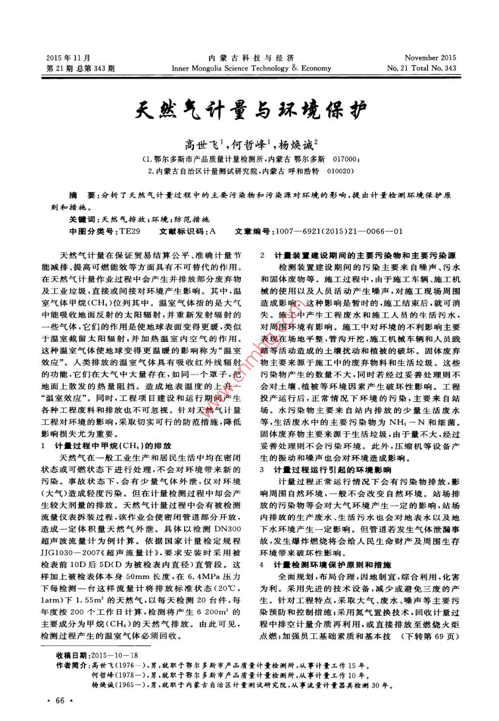 天然气计量与环境保护