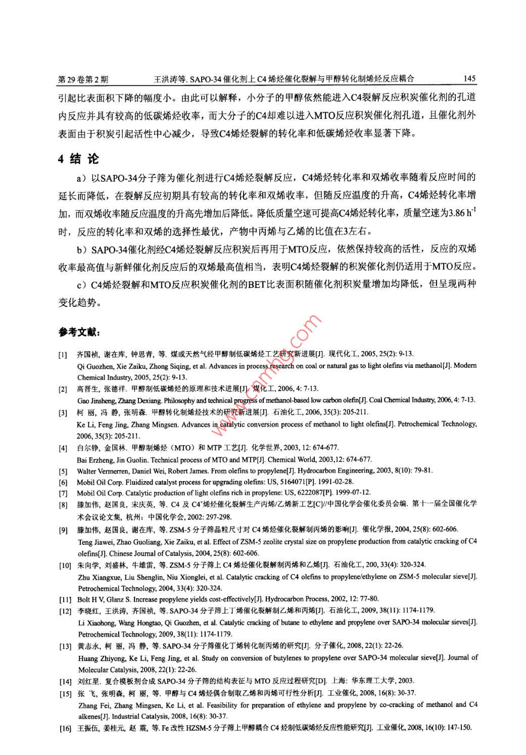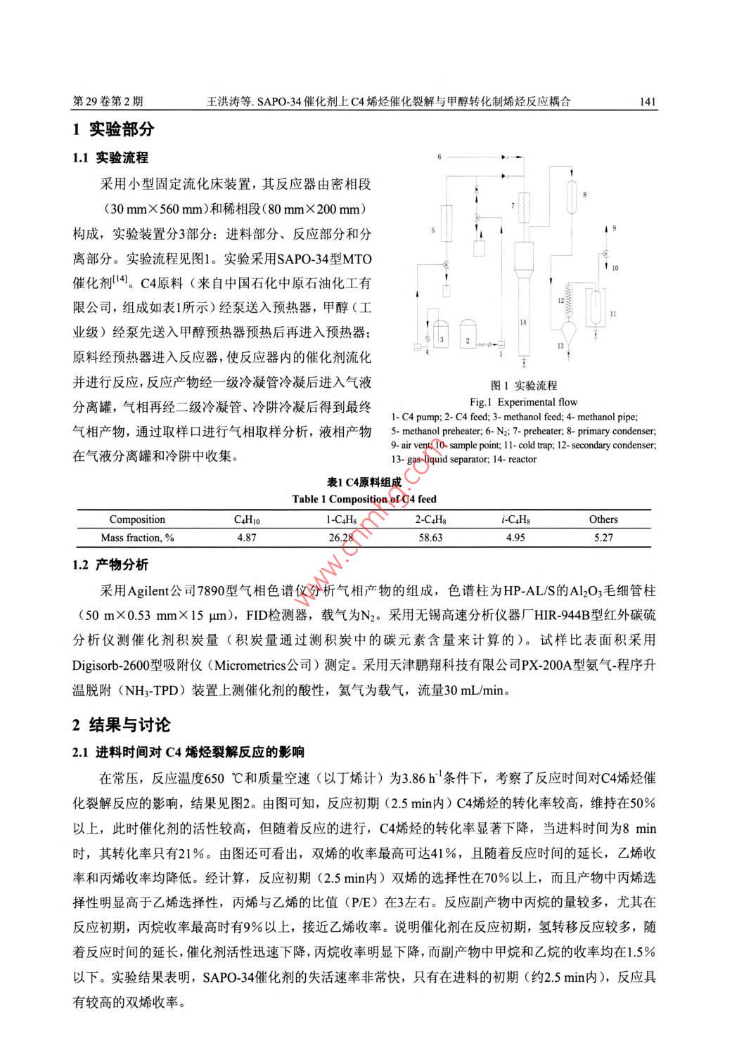 SAPO-34催化剂上C4烯烃催化裂解与甲醇转化制烯烃反应耦合