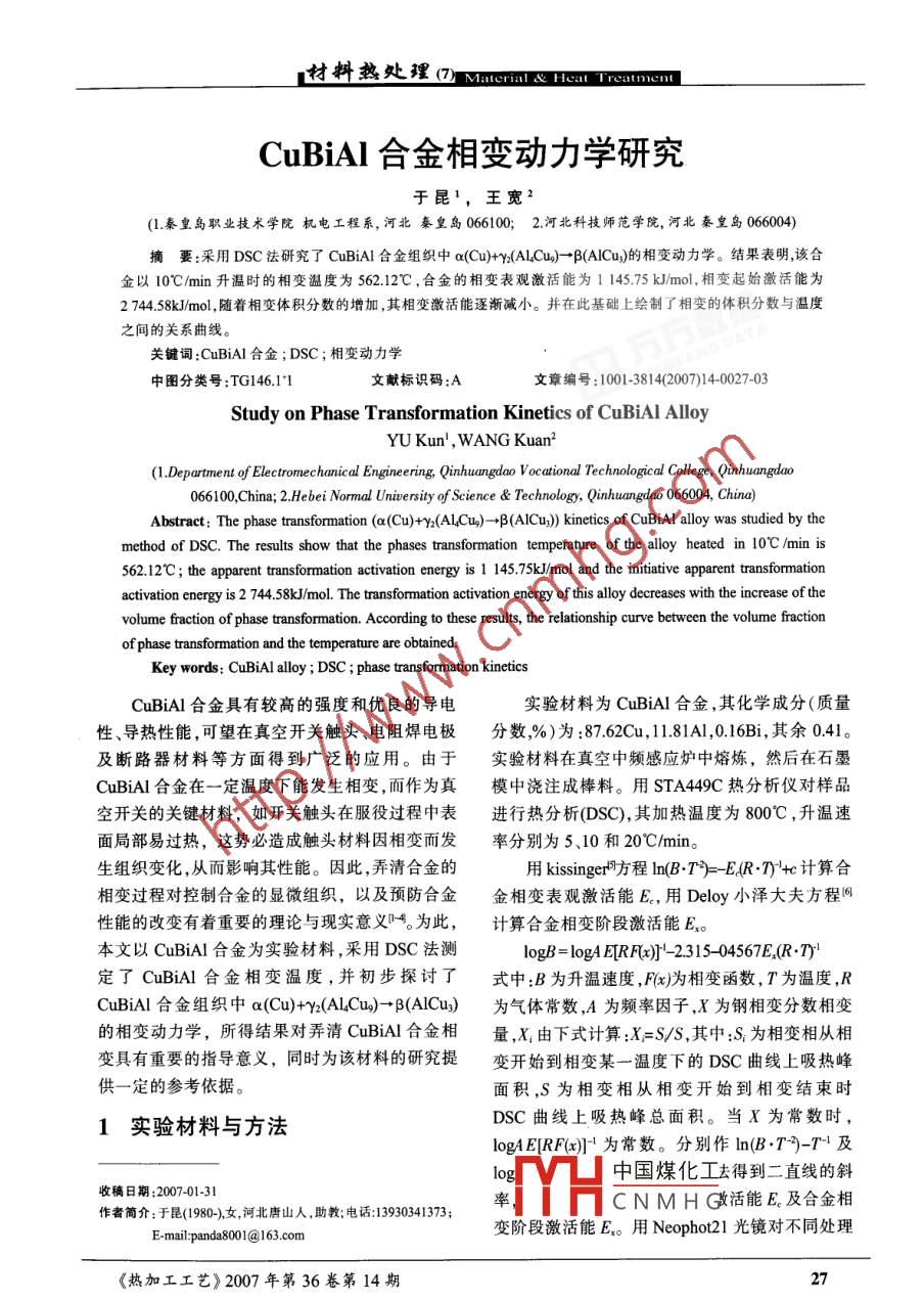 CuBiAl合金相变动力学研究