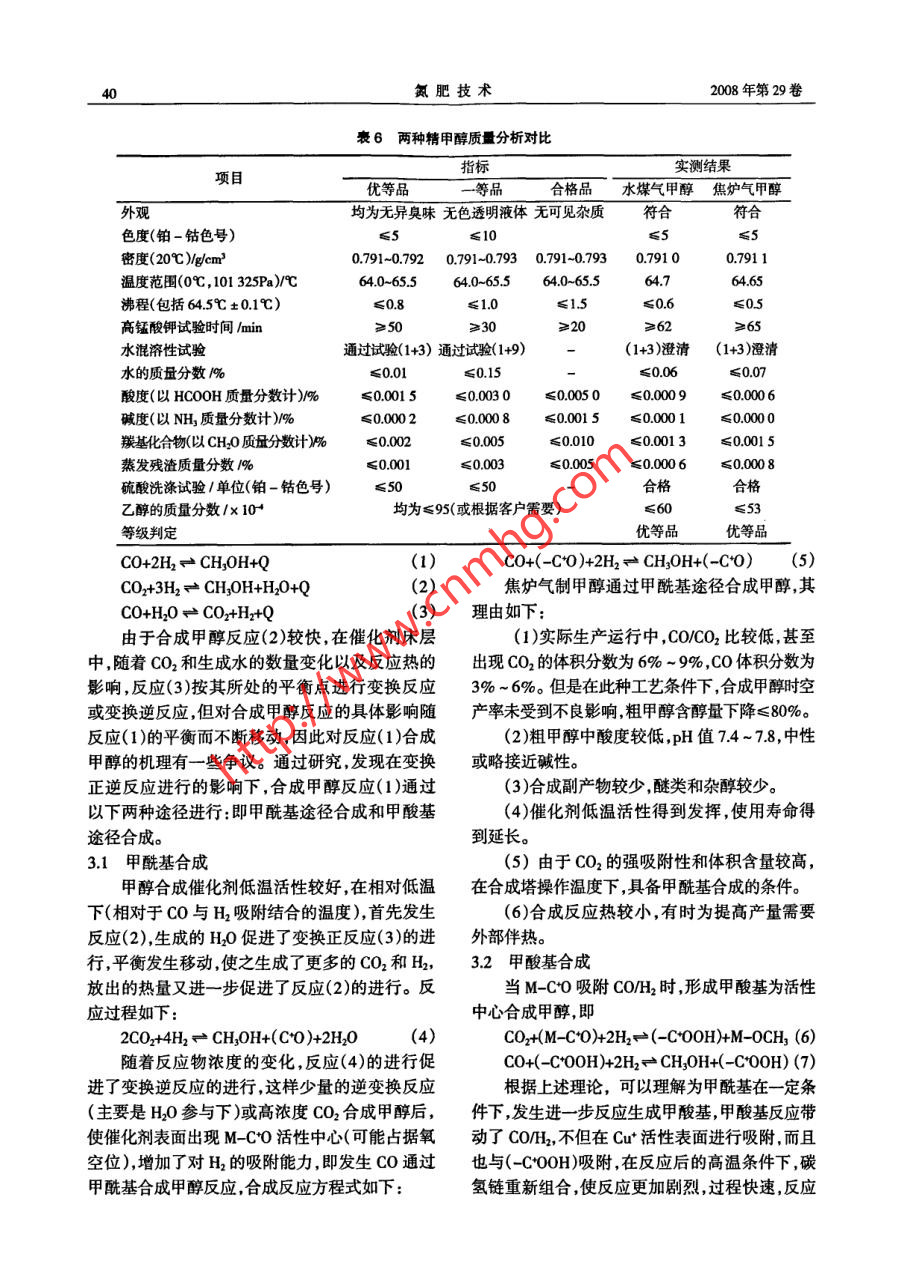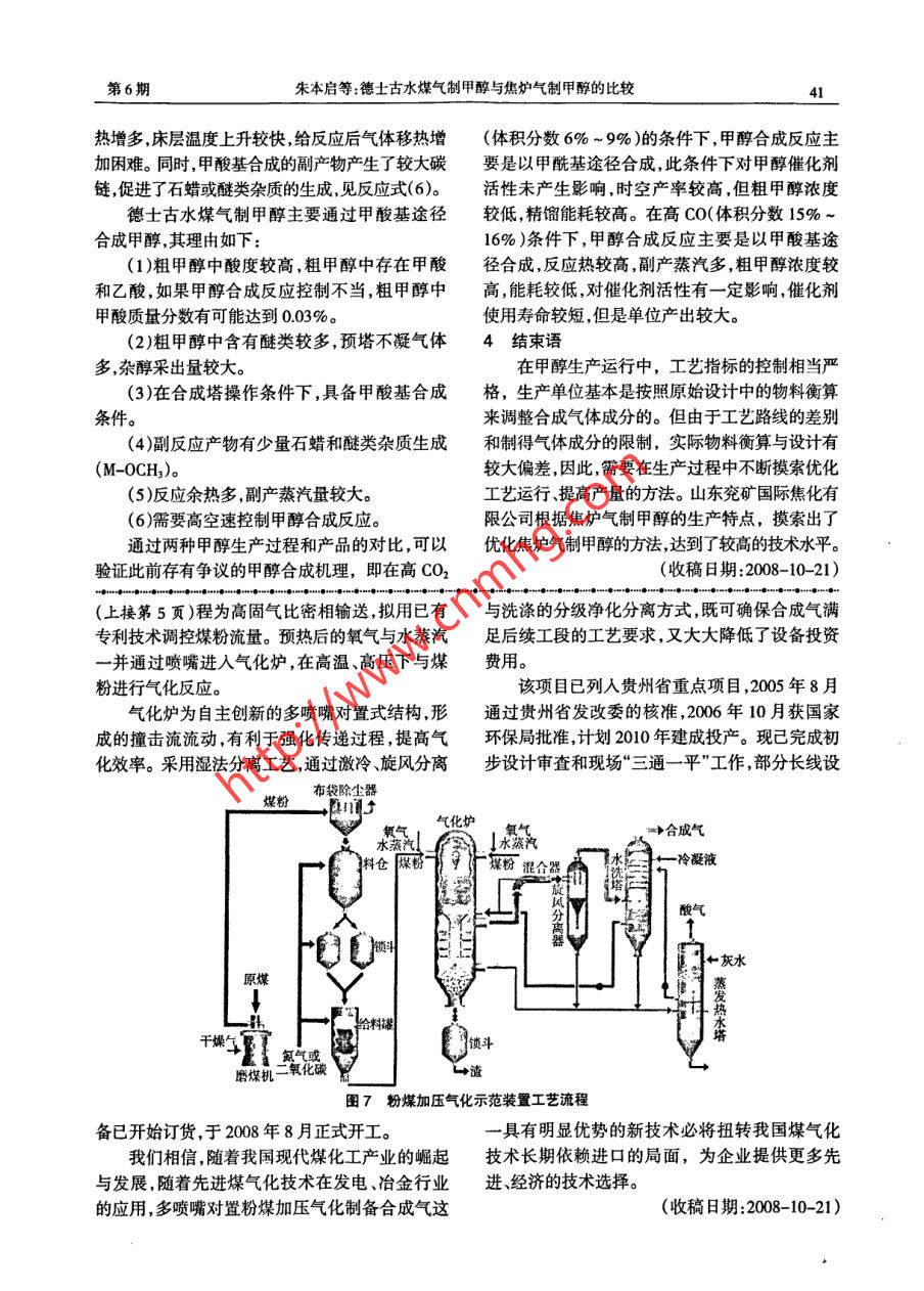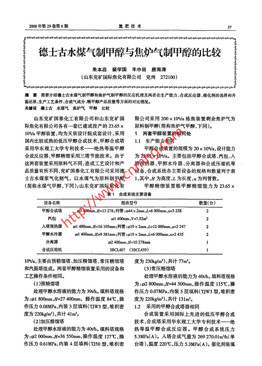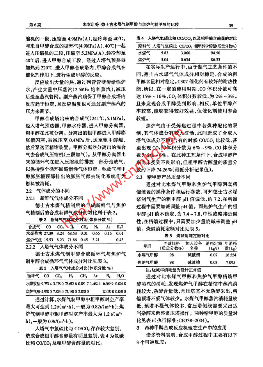 德士古水煤气制甲醇与焦炉气制甲醇的比较