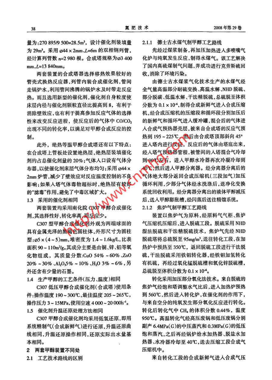 Lurgi和ICI低压甲醇合成工艺比较 2020-03-17