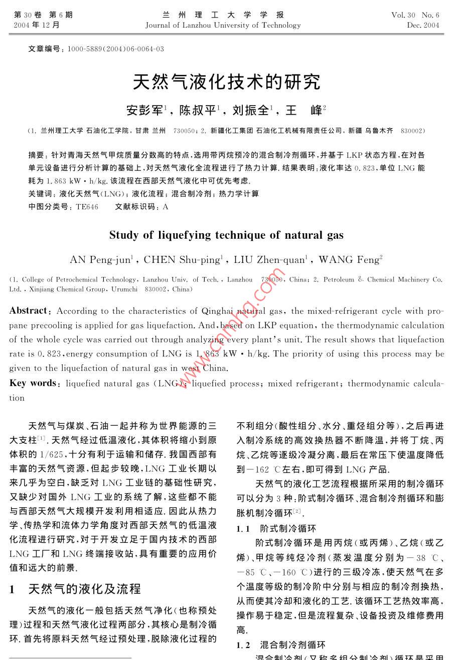 天然气液化技术的研究