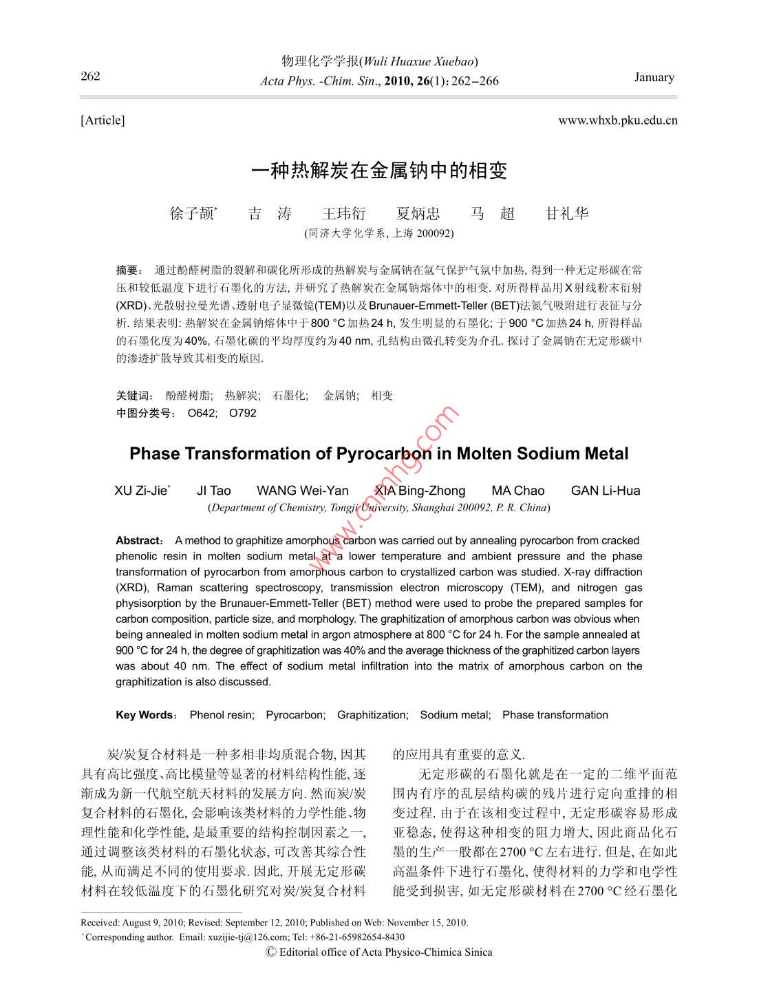 - 期刊名字:物理化学学报
