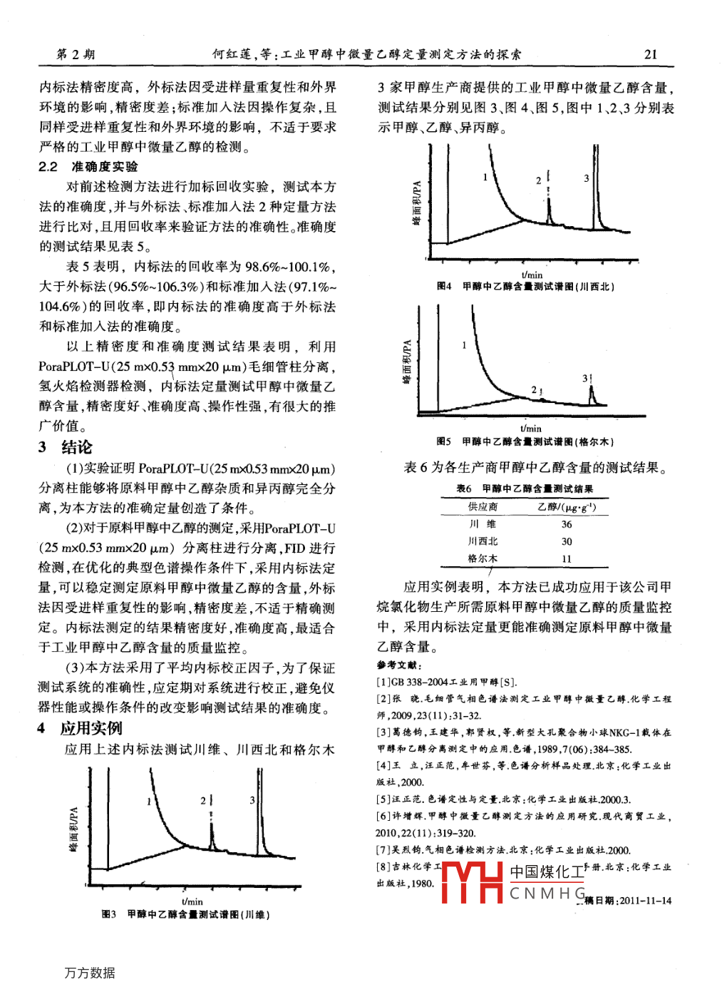 工业甲醇中微量乙醇定量测定方法的探索