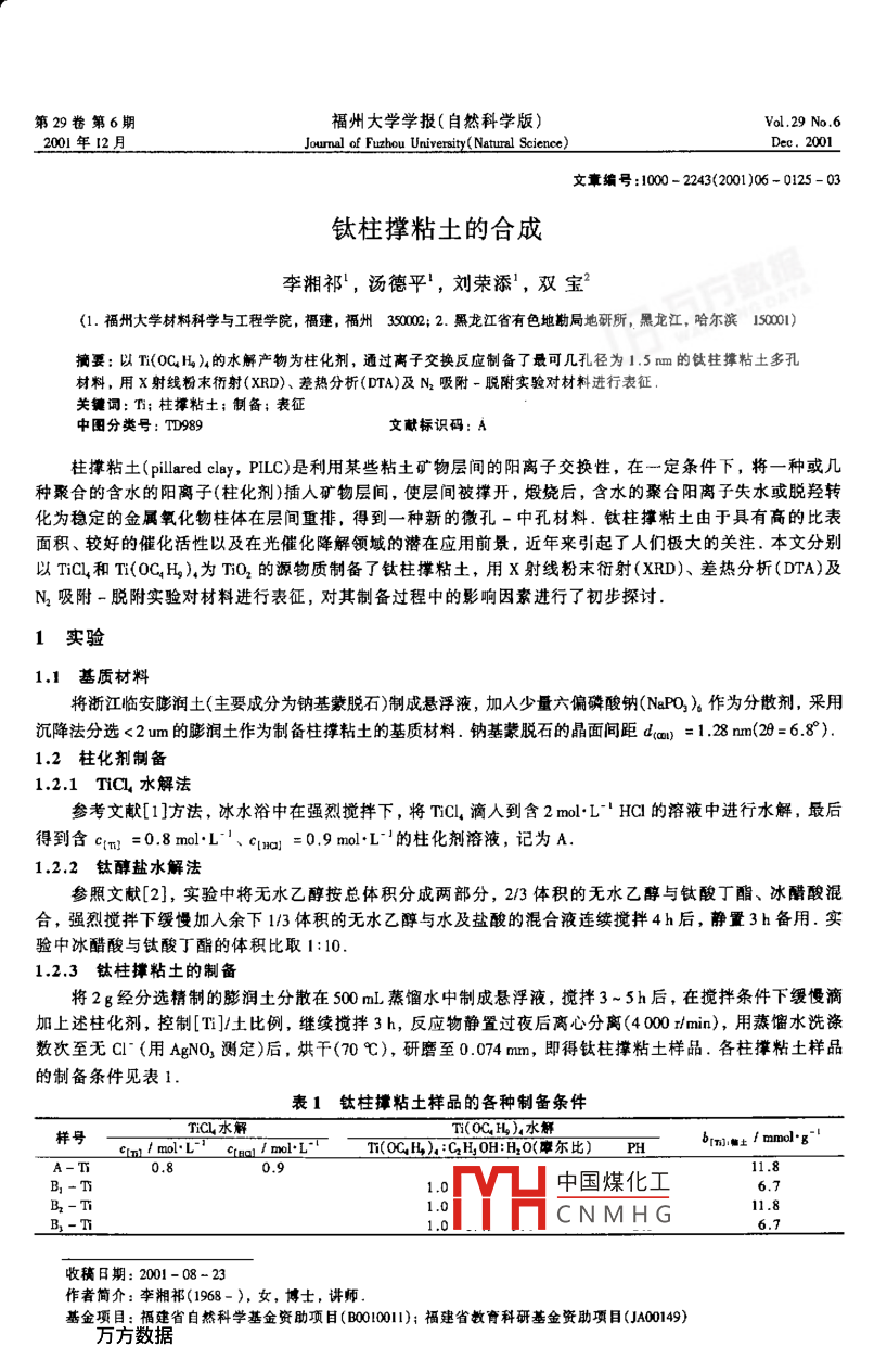 钛柱撑粘土的合成