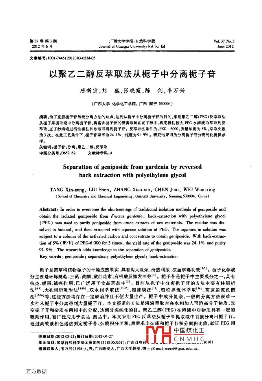 以聚乙二醇反萃取法从栀子中分离栀子苷