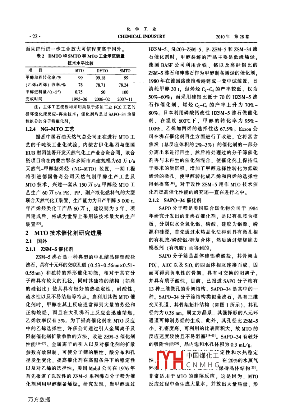 甲醇制烯烃用催化剂研究进展