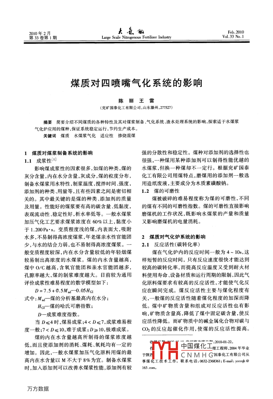 - 作者单位:兖矿国泰化工有限公司