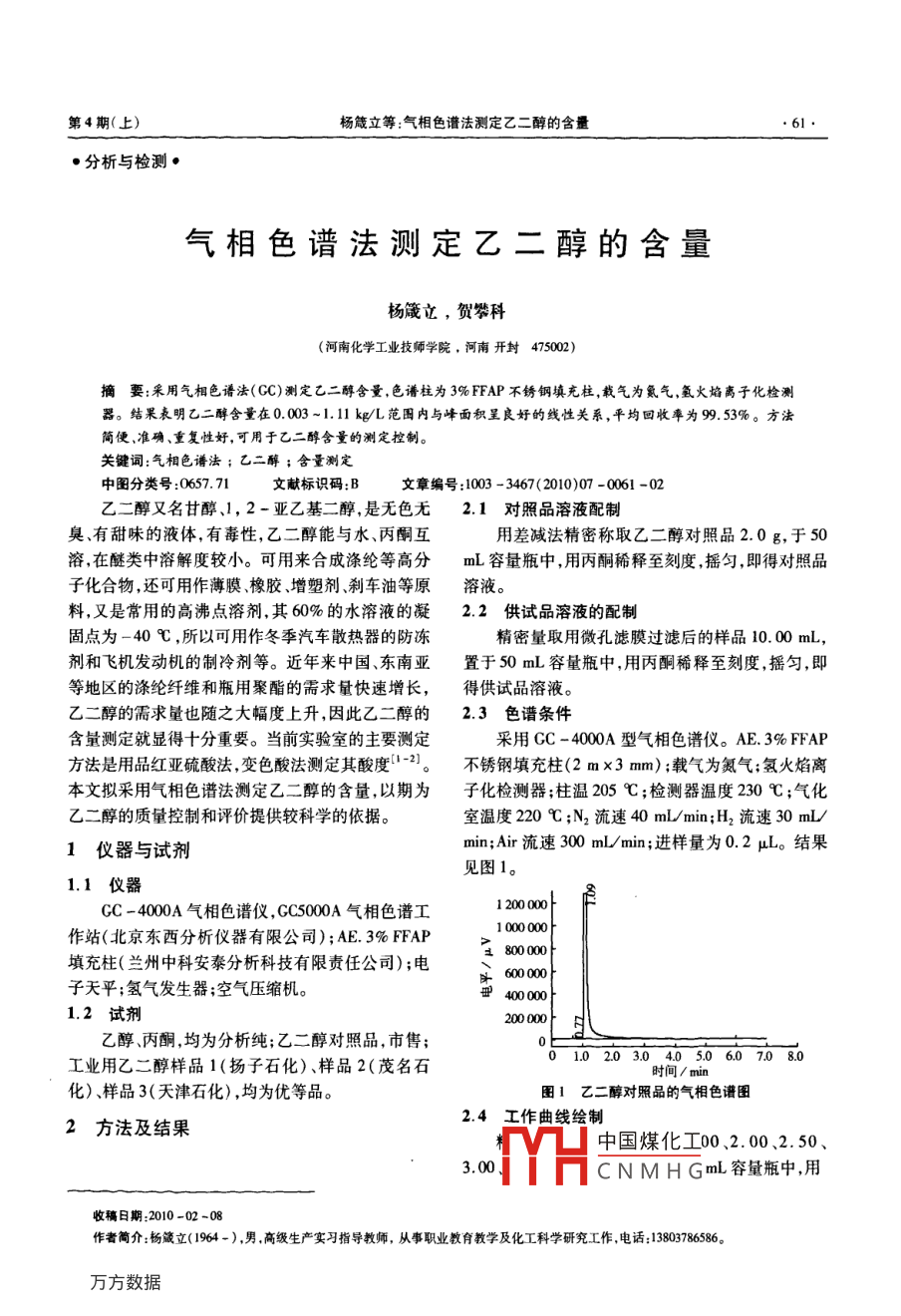 气相色谱法测定乙二醇的含量