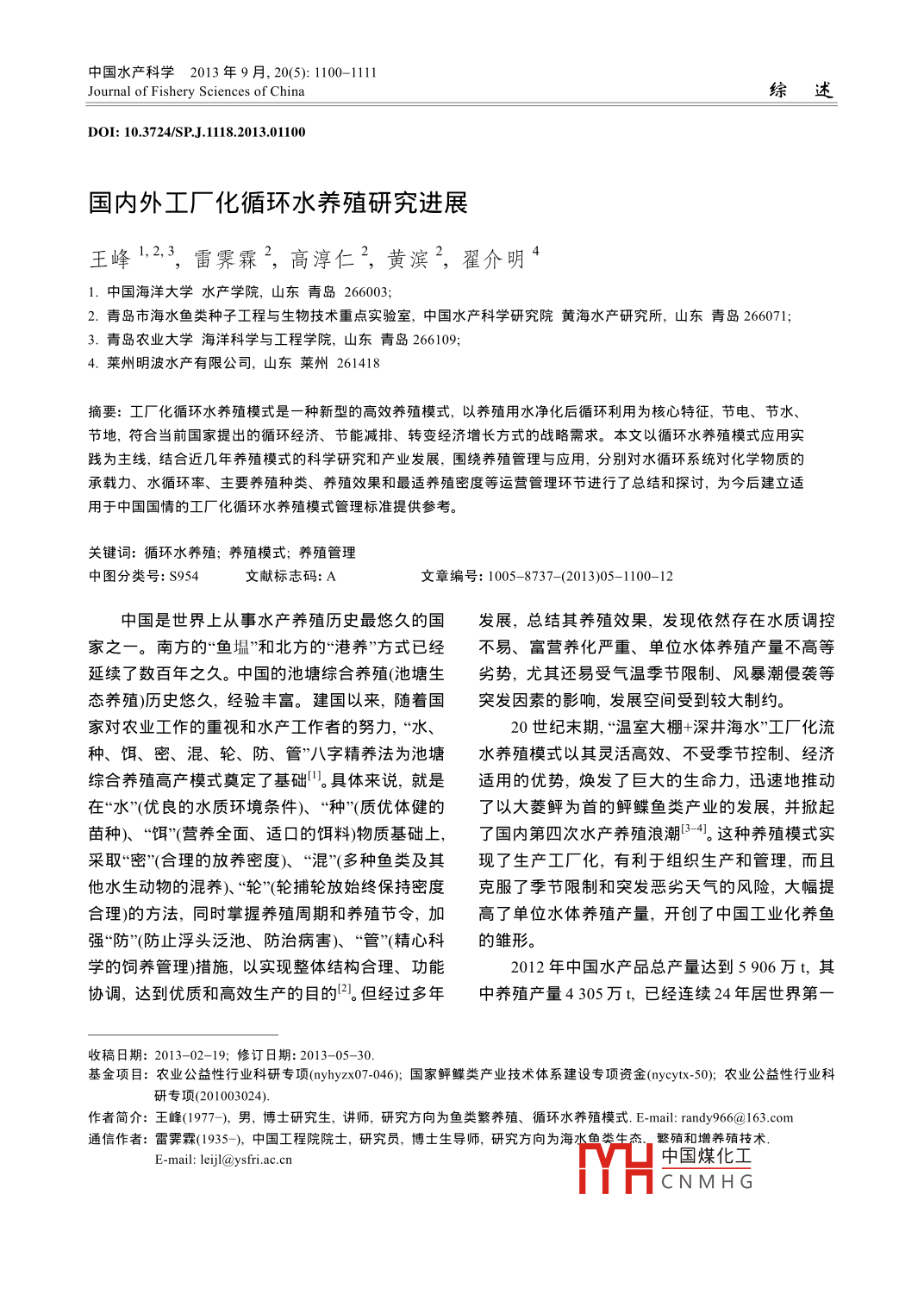 - 期刊名字:中国水产科学