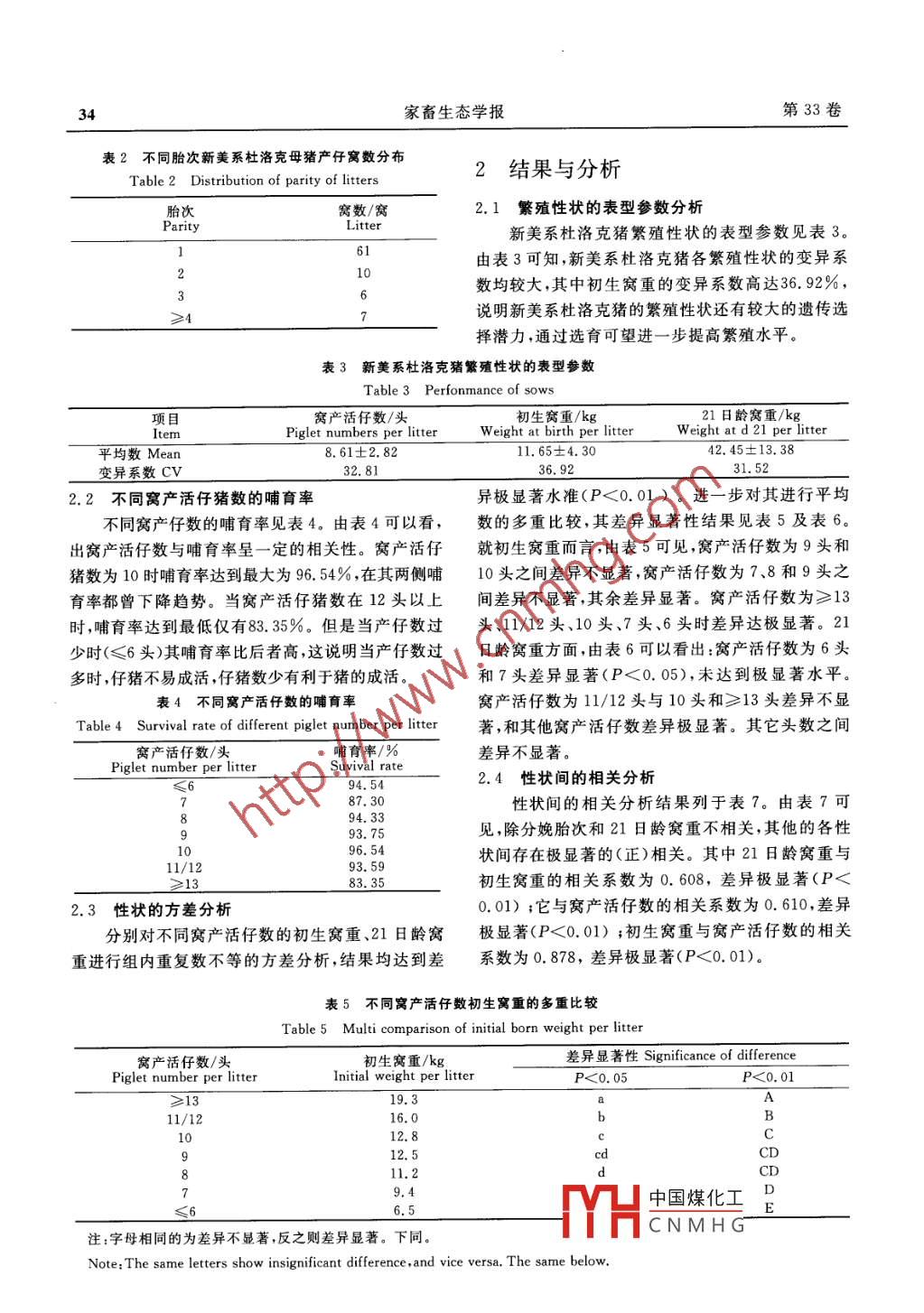 猪窝产活仔数与初生窝重、21日龄窝重的相关分析