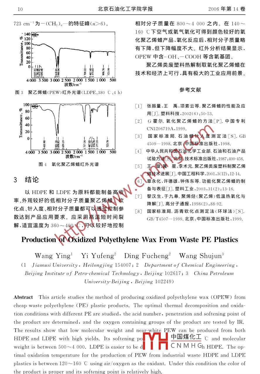 废聚乙烯塑料制氧化聚乙烯蜡的研究
