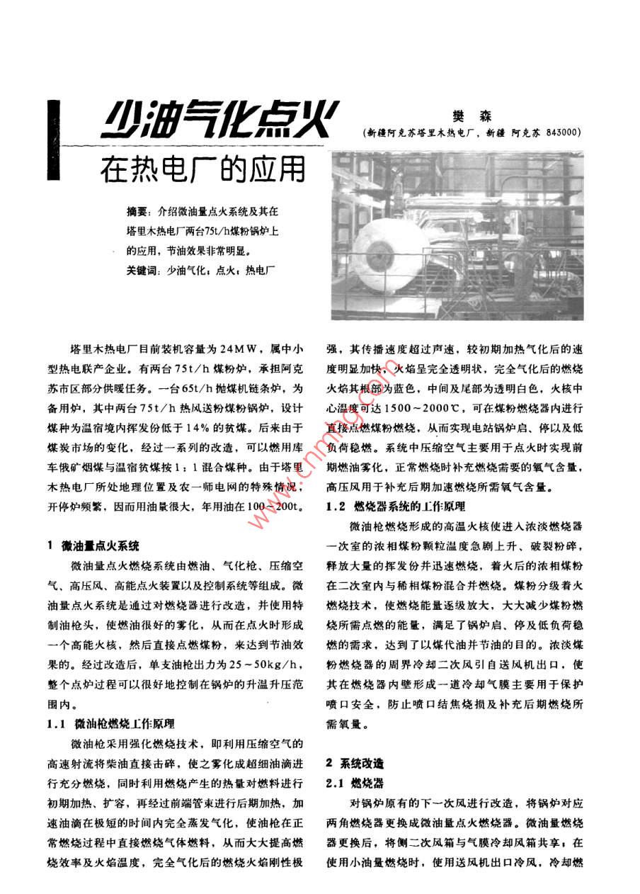 少油气化点火在热电厂的应用