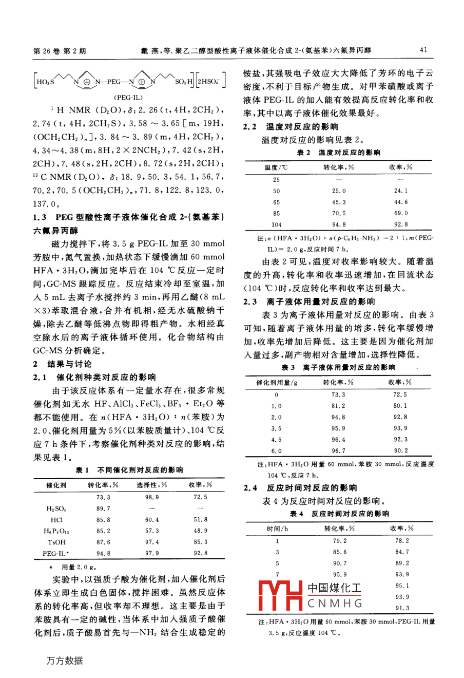 聚乙二醇型酸性离子液体催化合成2-(氨基苯)六氟异丙醇