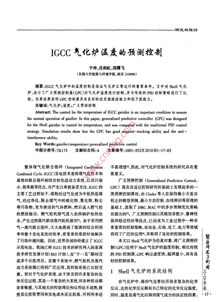IGCC气化炉温度的预测控制