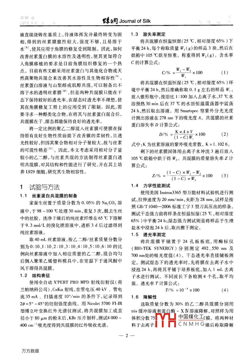 乙二醇/丝素蛋白共混膜的研究