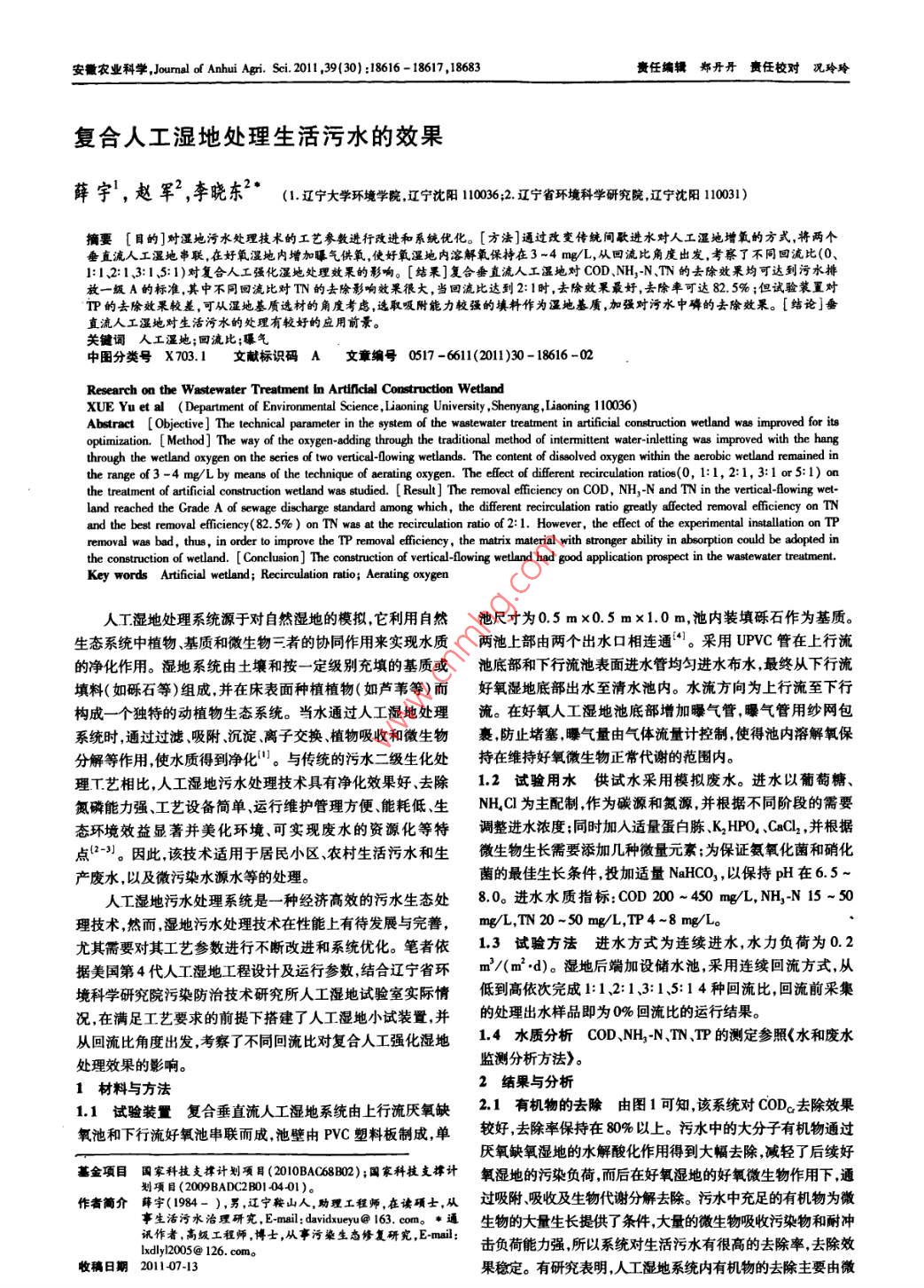 复合人工湿地处理生活污水的效果