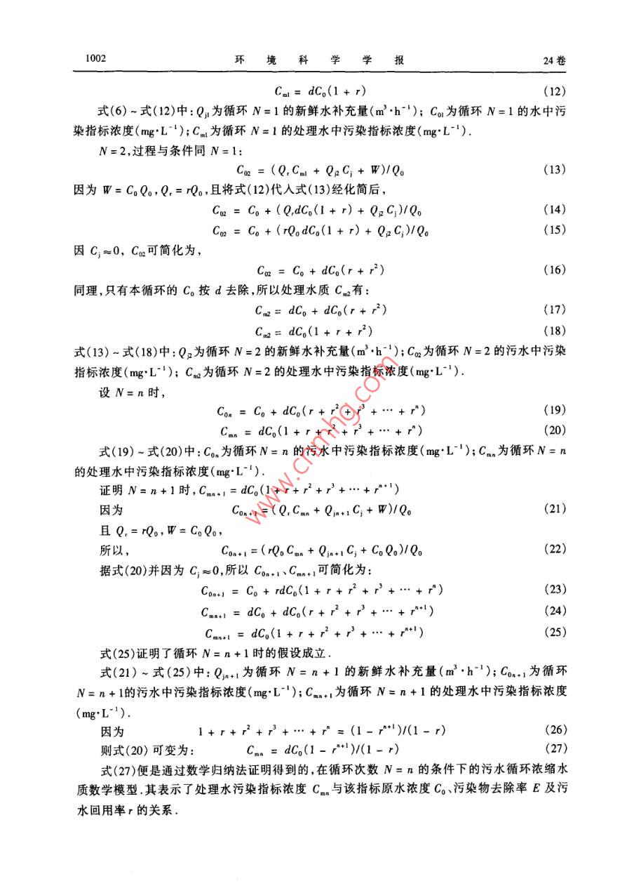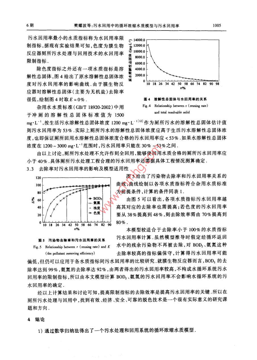 污水回用中的循环浓缩水质模型与污水回用率