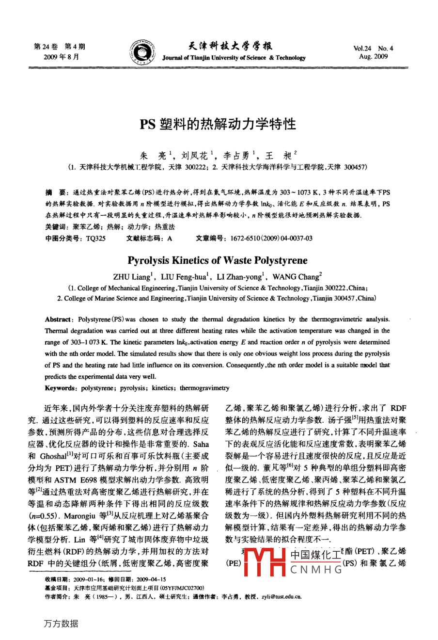- 期刊名字:天津科技大学学报