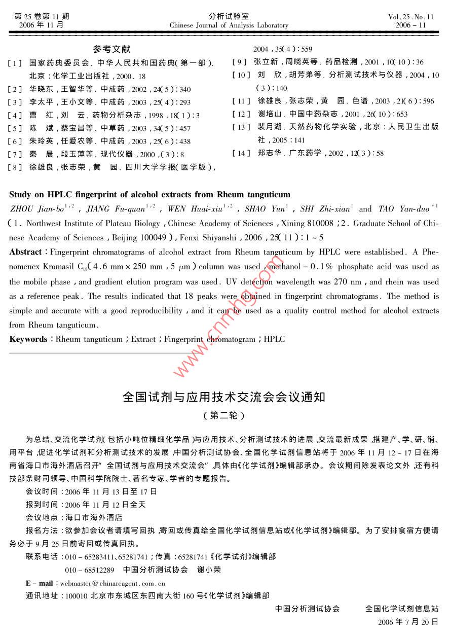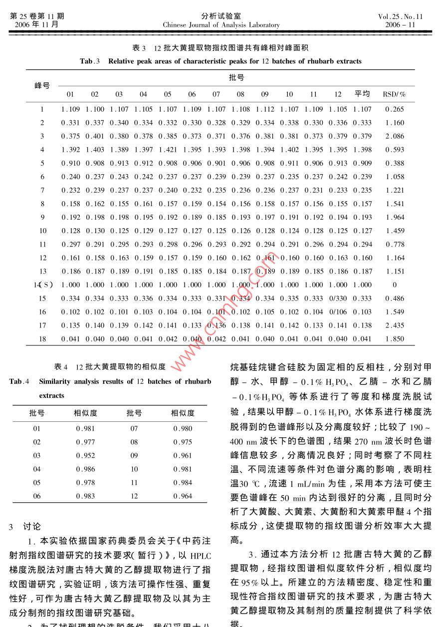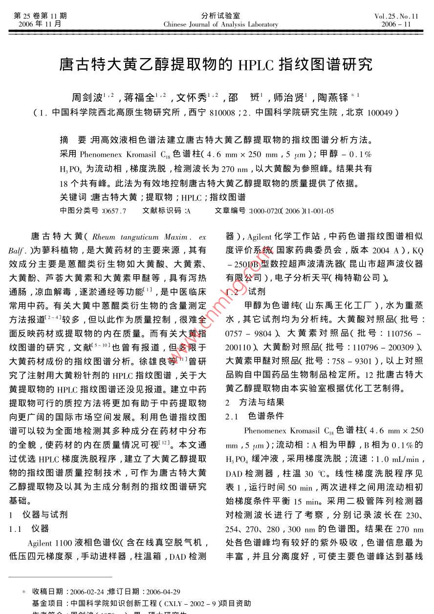 唐古特大黄乙醇提取物的HPLC指纹图谱研究