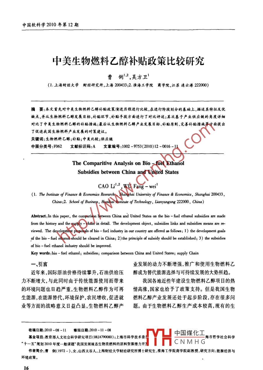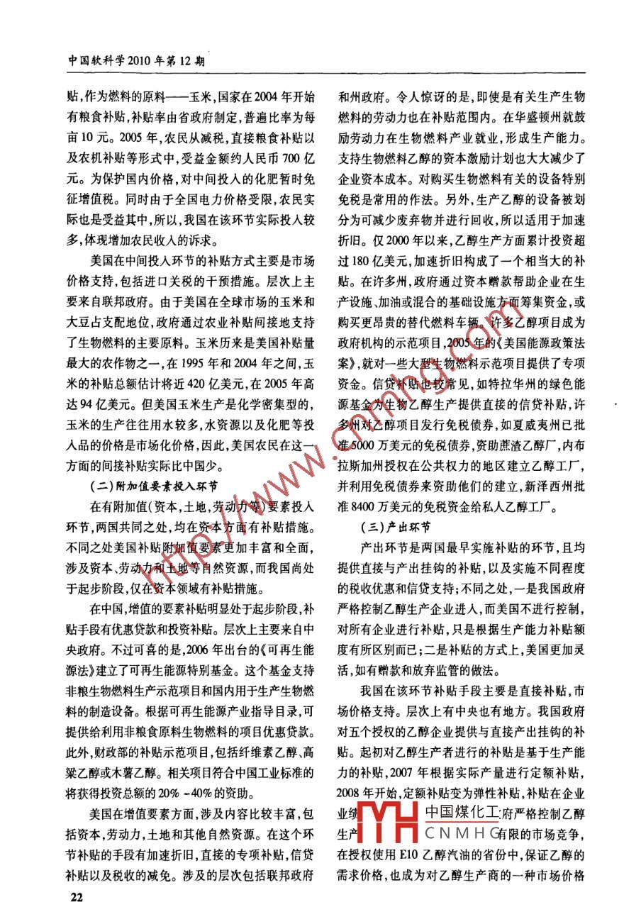 中美生物燃料乙醇补贴政策比较研究