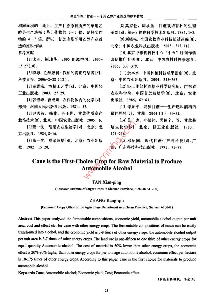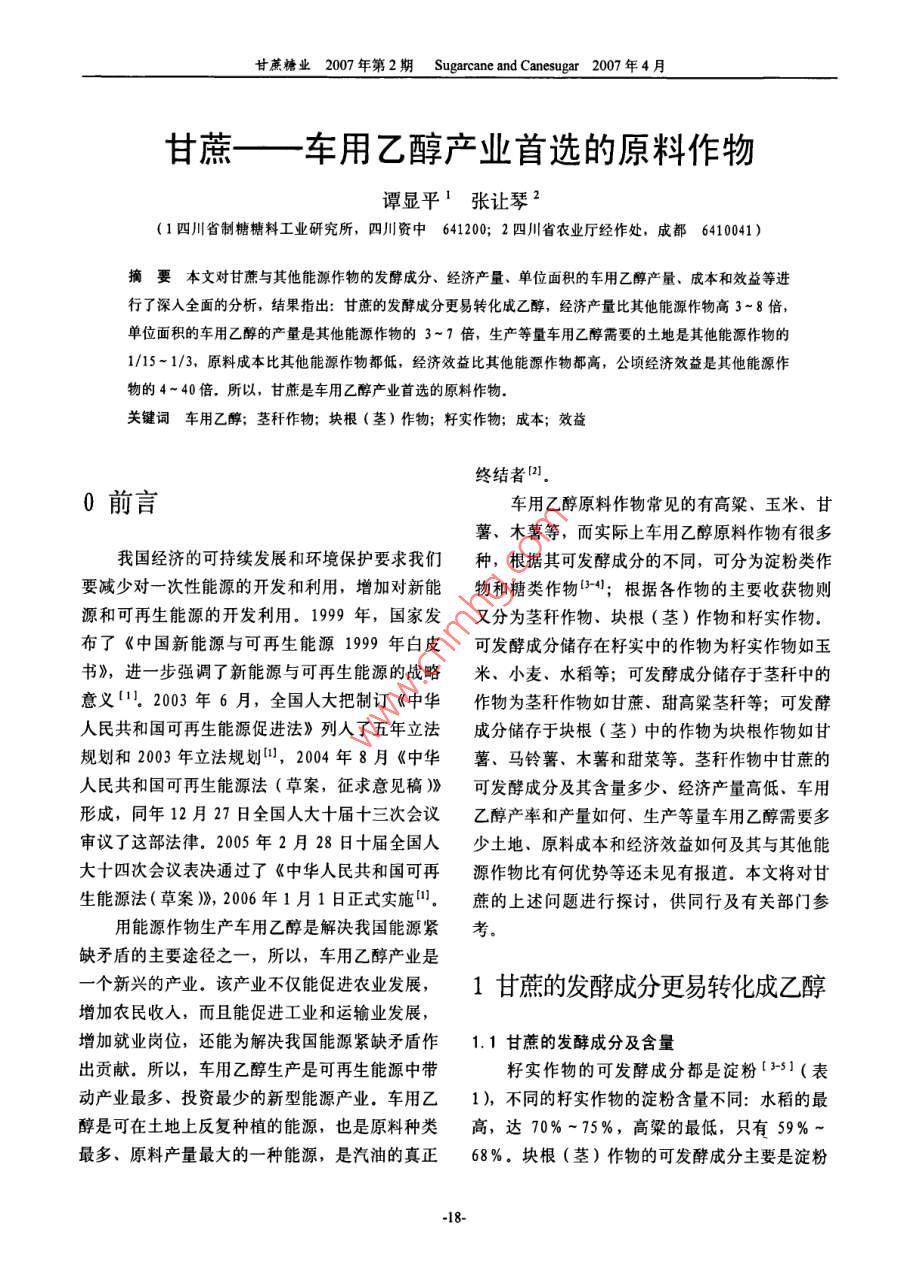 甘蔗——车用乙醇产业首选的原料作物