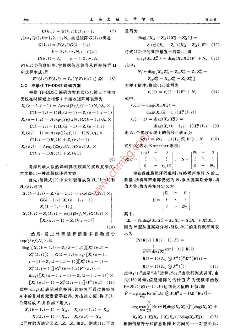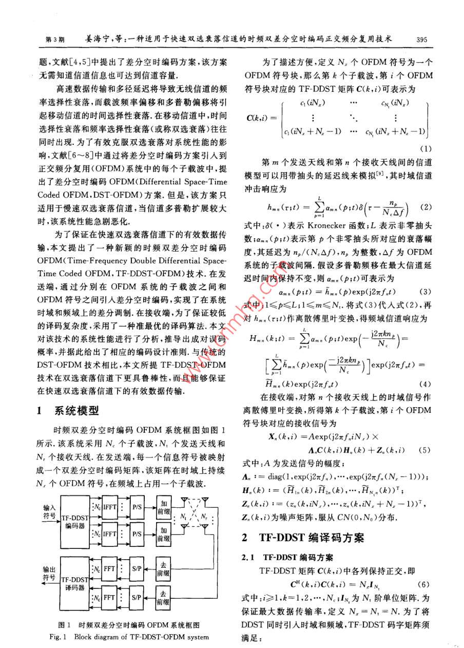 一种适用于快速双选衰落信道的时频双差分空时编码正交频分复用技术