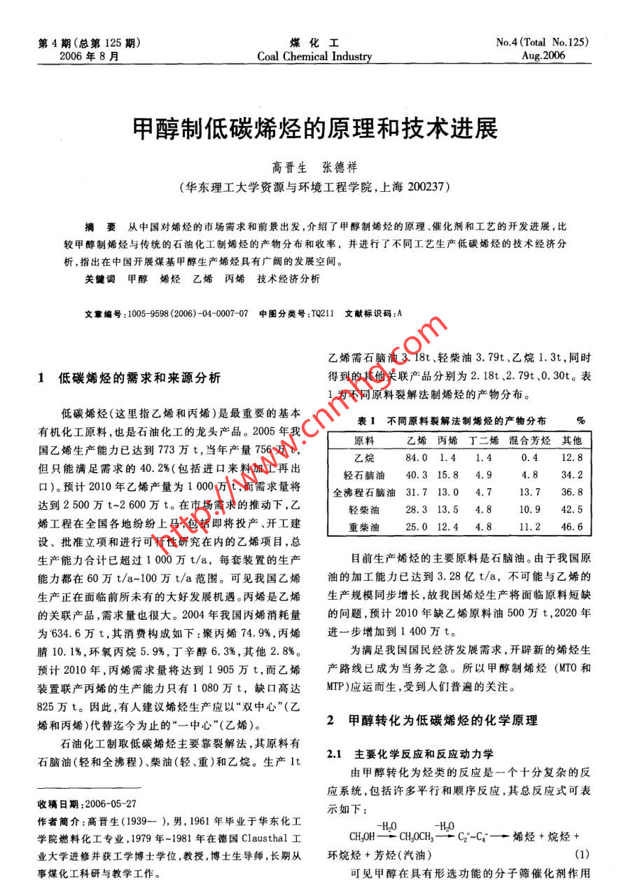 - 论文作者:高晋生,张德祥