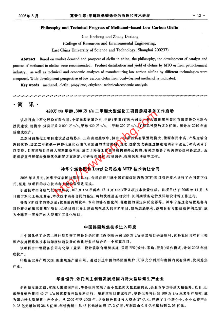 - 期刊名字:煤化工