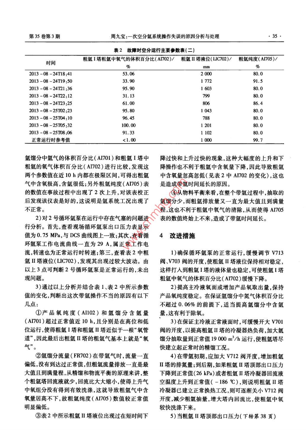 一次空分氩系统操作失误的原因分析与处理
