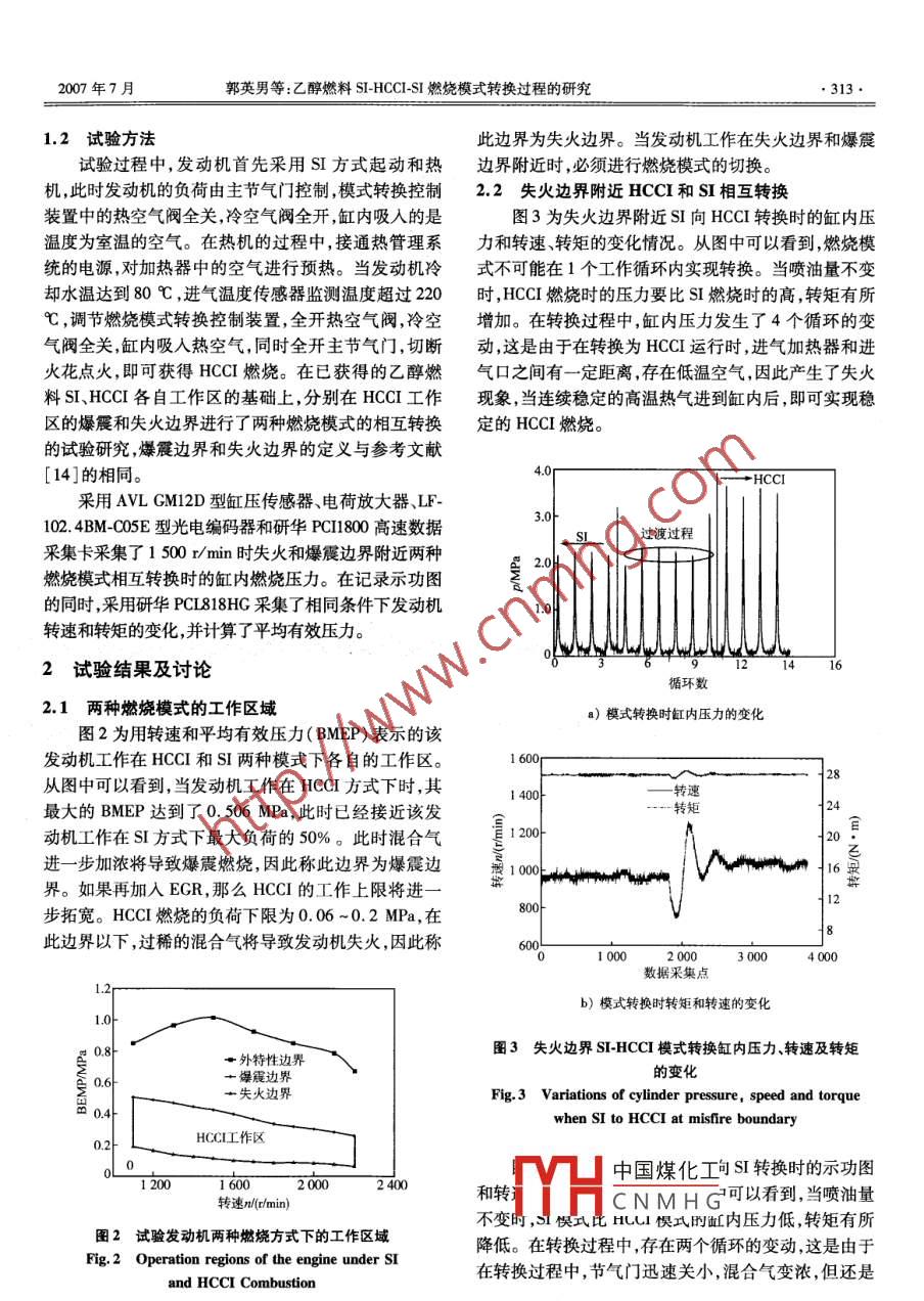 乙醇燃料SI-HCCI-SI燃烧模式转换过程的研究