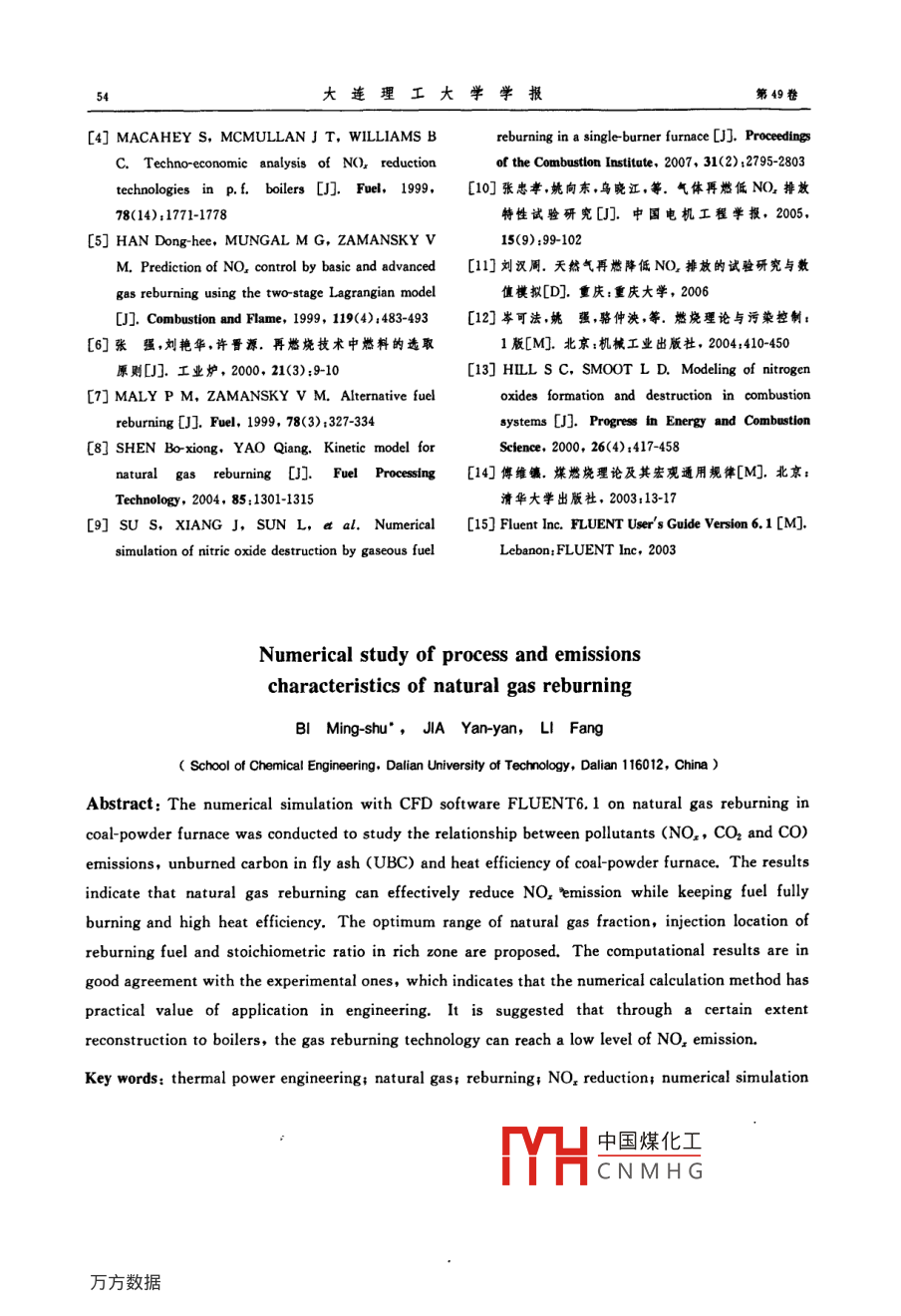 天然气再燃过程与排放特性数值研究