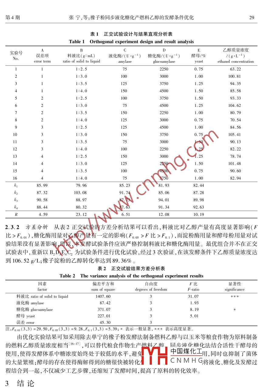 橡子粉同步液化糖化产燃料乙醇的发酵条件优化
