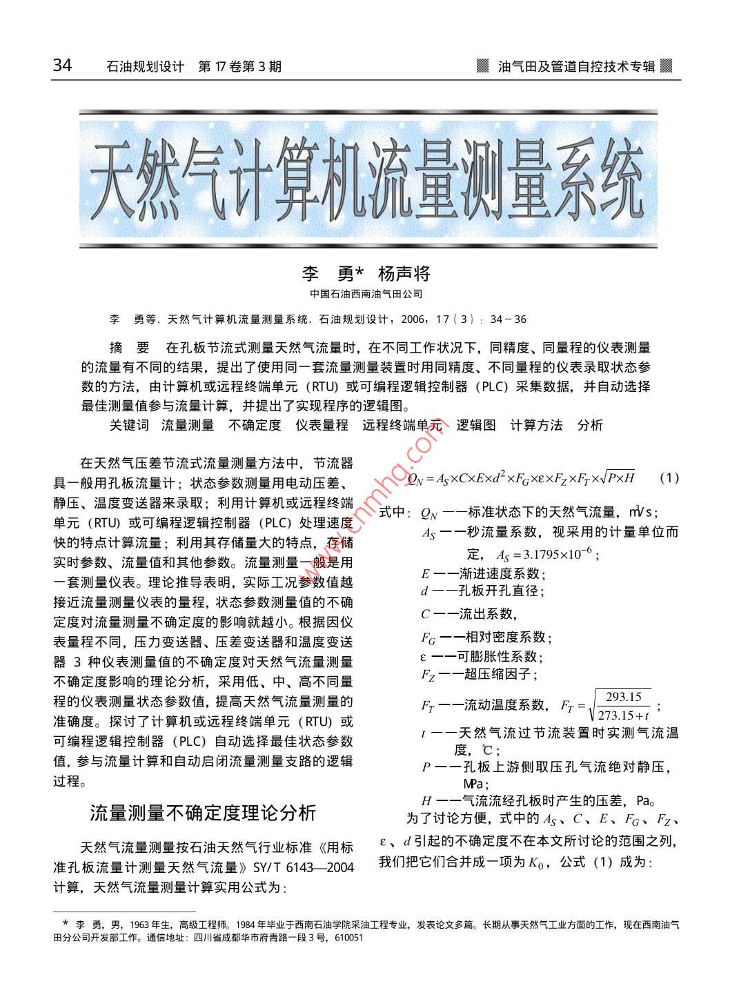 天然气计算机流量测量系统