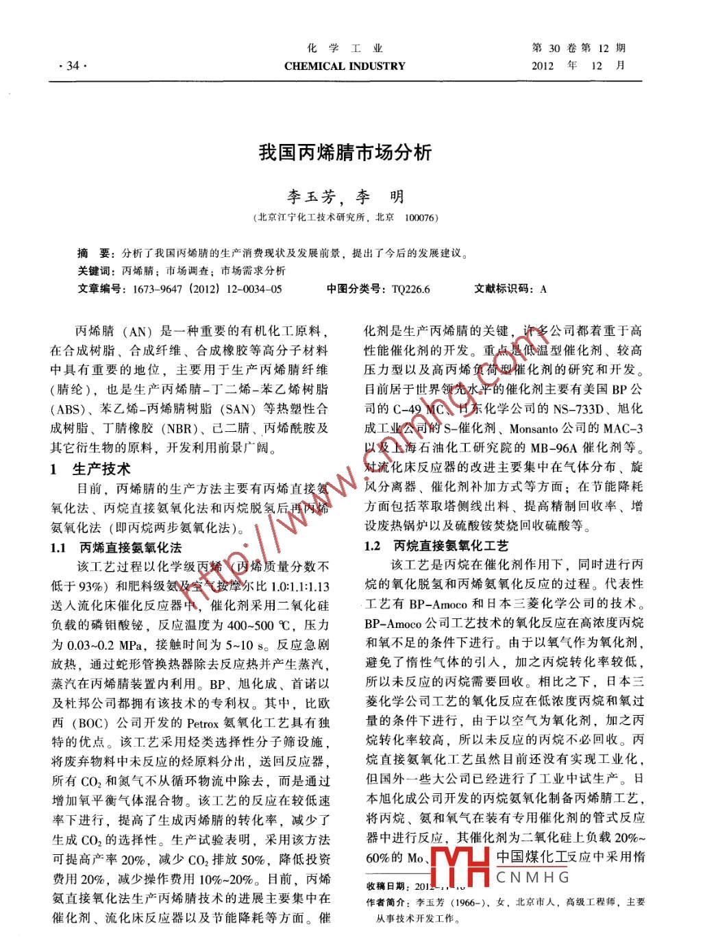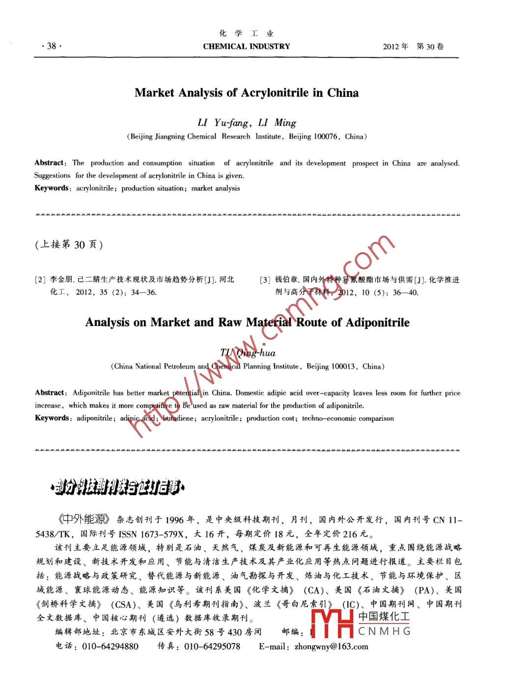 - 期刊名字:化学工业