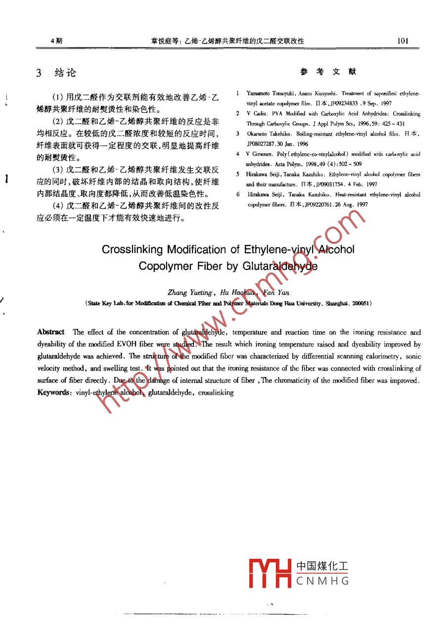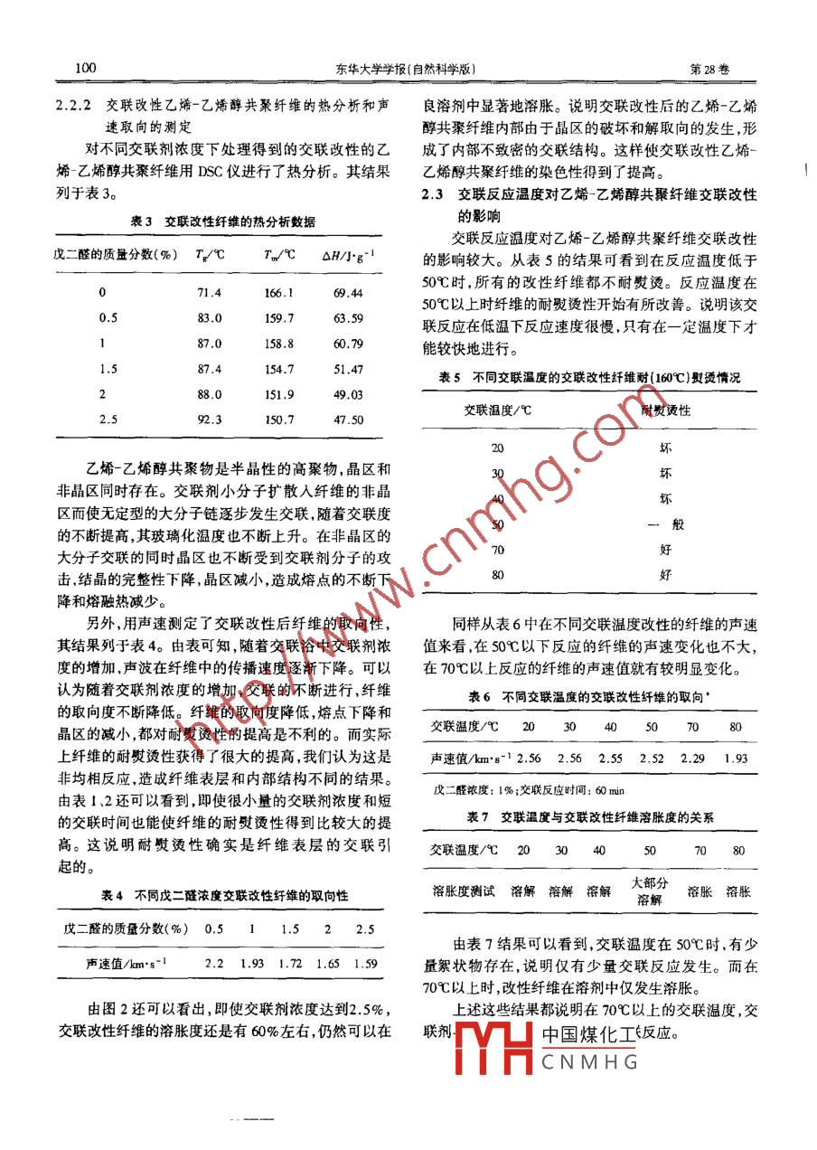 乙烯-乙烯醇共聚纤维的戊二醛交联改性