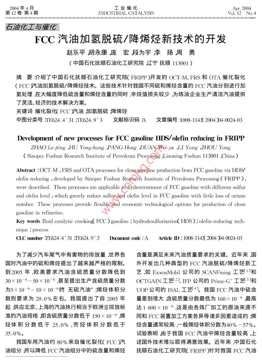 - 作者单位:中国石化抚顺雷竞技世界杯手机登录 化工研究院
