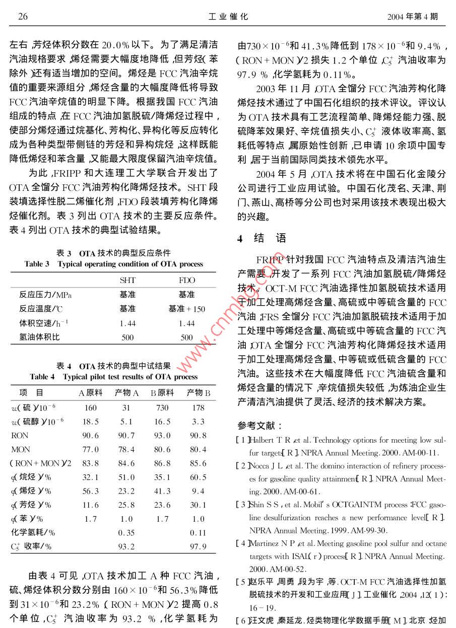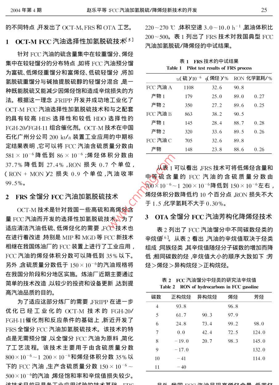 FCC汽油加氢脱硫/降烯烃新技术的开发