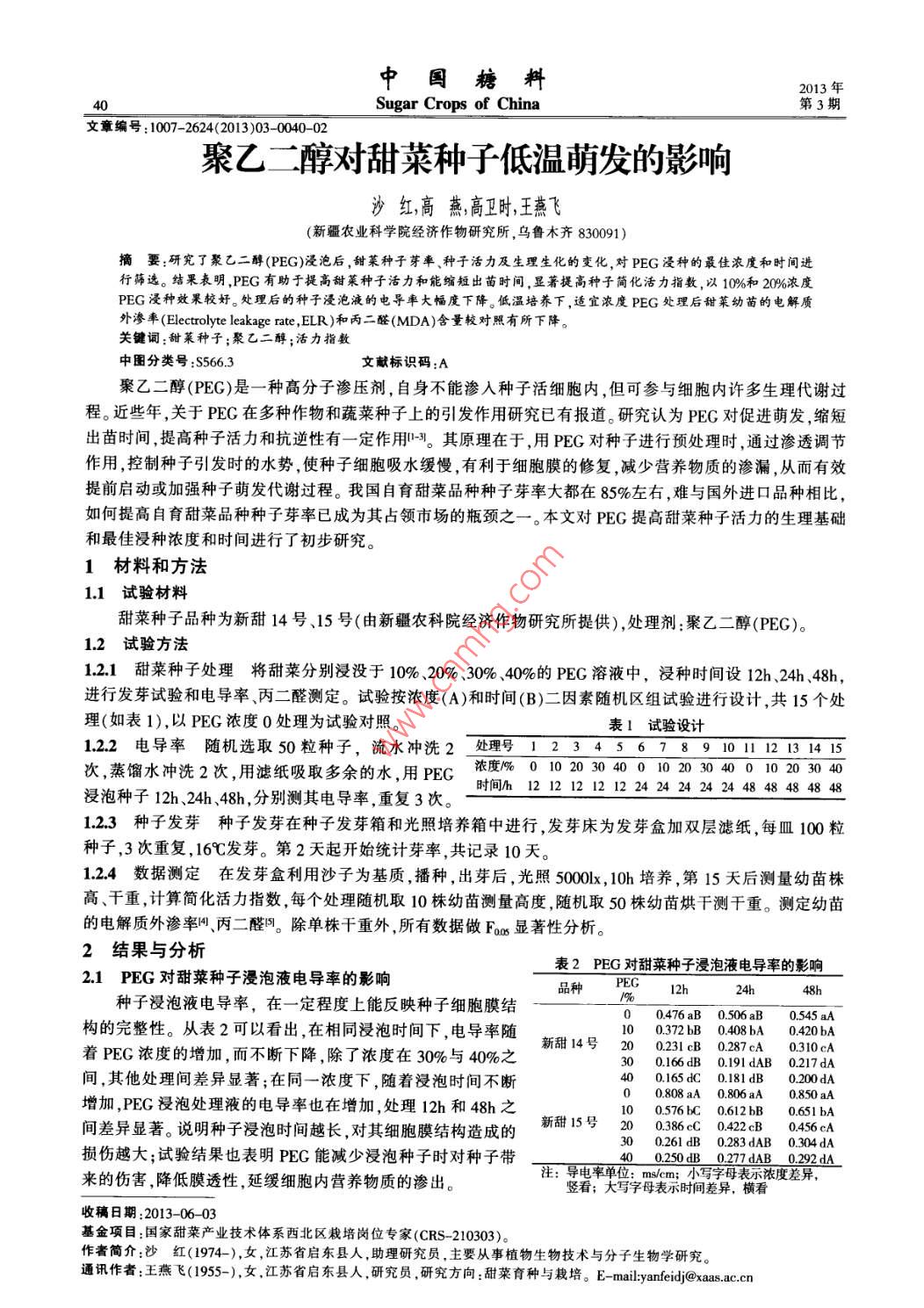 聚乙二醇对甜菜种子低温萌发的影响