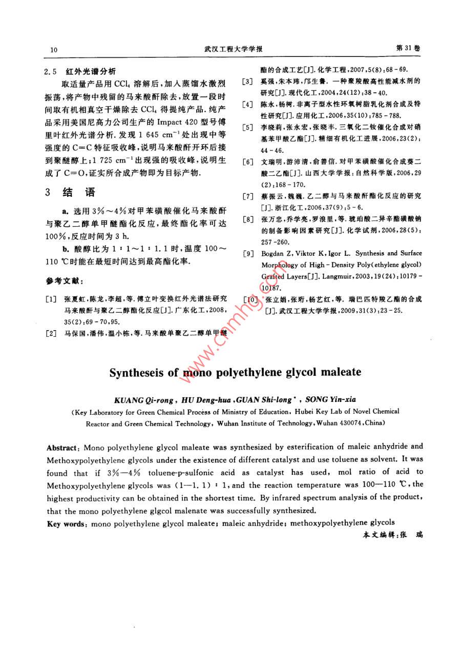- 作者单位:武汉工程大学绿色化工过程省部共建教育部重点实验室